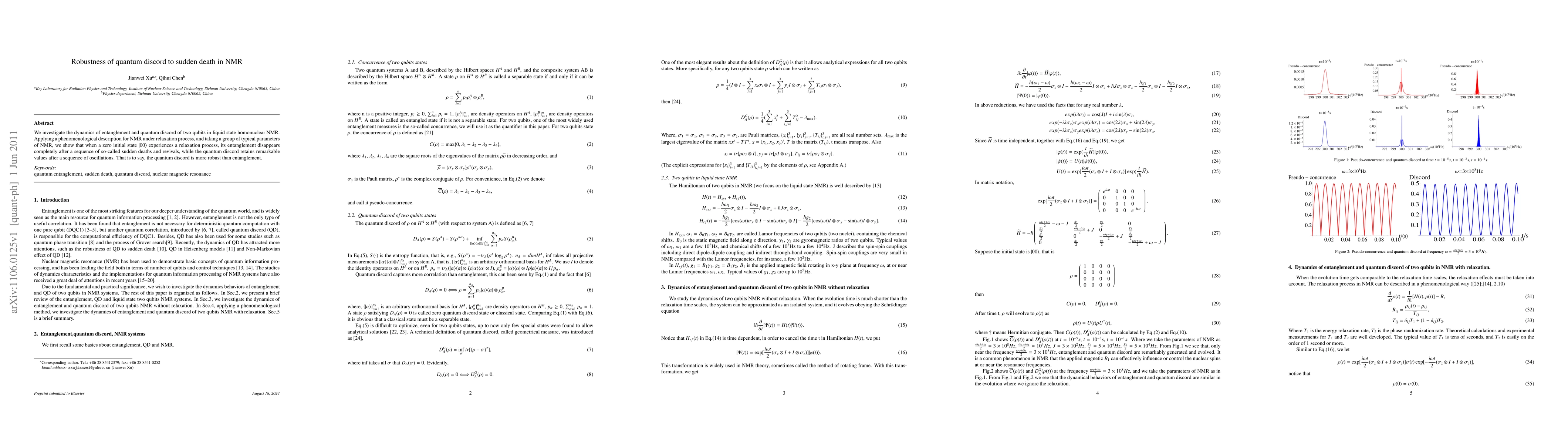 This paper explores the dynamics of quantum discord in NMR, demonstrating that while entanglement vanishes after a series of sudden death and revival events, quantum discord remains significant, indicating its greater robustness compared to entanglement.