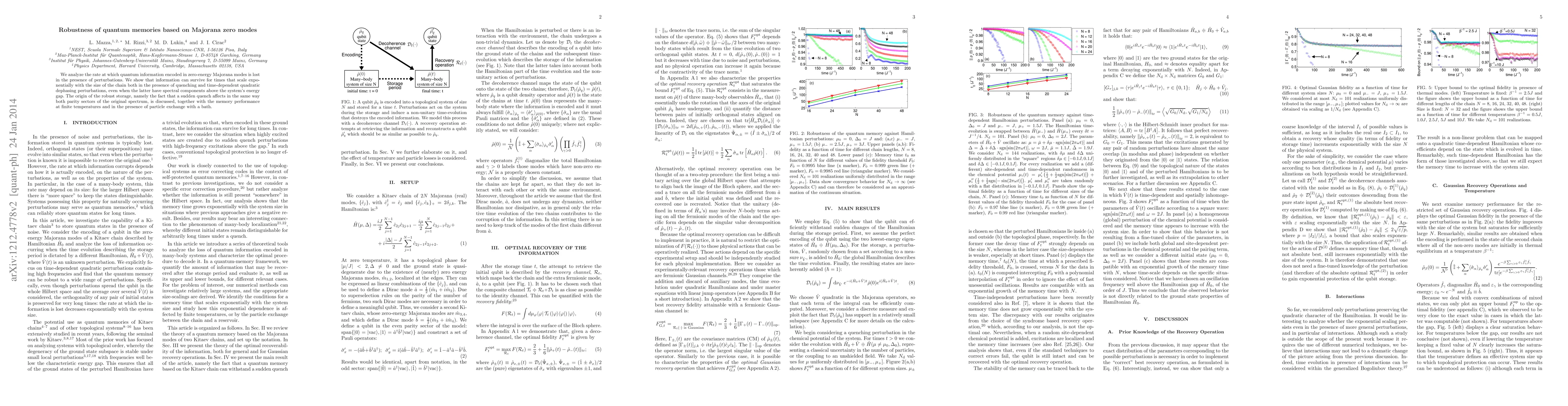 This paper investigates the robustness of quantum memories utilizing Majorana zero modes against information loss due to perturbations. It demonstrates that quantum information can persist for exponentially long times, even with perturbations above the system's energy gap, due to the unique properties of sudden quenches. The study also examines memory performance at finite temperatures and with particle exchange.