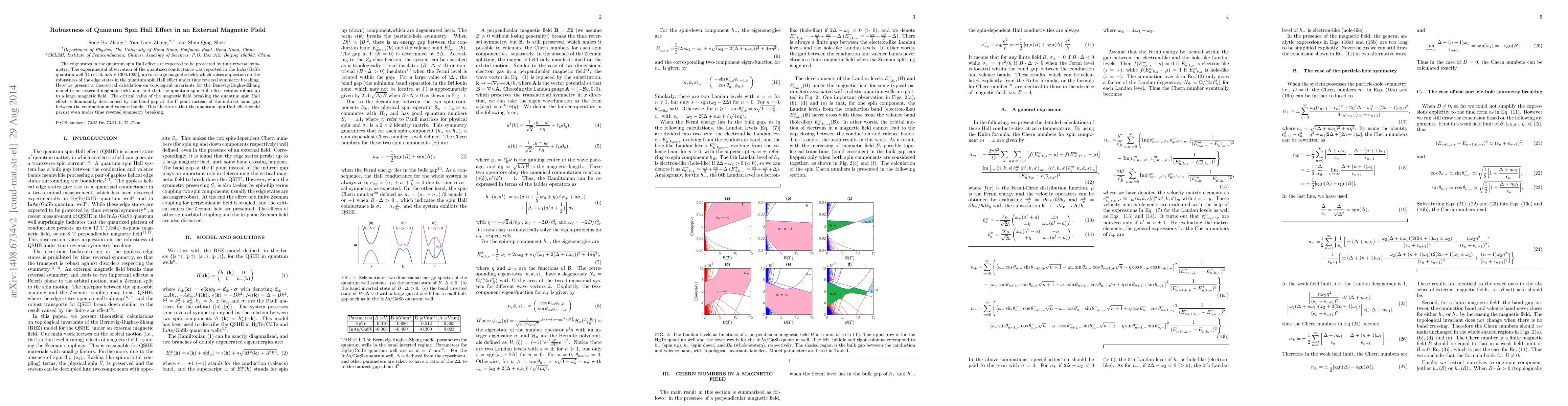This paper investigates the robustness of the quantum spin Hall effect under an external magnetic field, finding that it remains stable up to a large magnetic field. The critical magnetic field value that breaks the effect is primarily determined by the band gap at the $\Gamma$ point, indicating the persistence of the quantum spin Hall effect even under time reversal symmetry breaking.