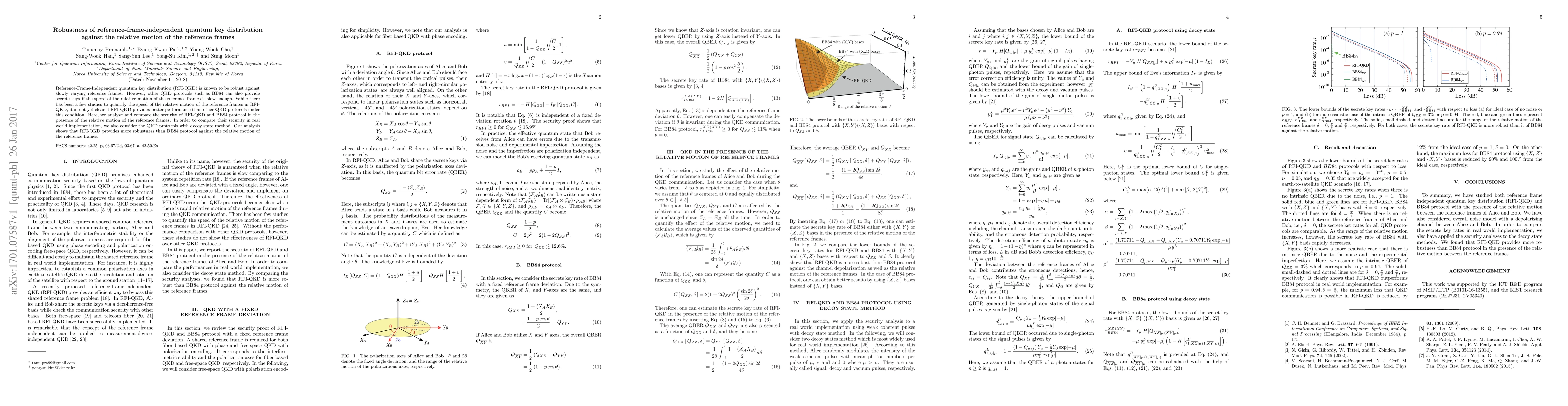 This paper compares the robustness of Reference-Frame-Independent quantum key distribution (RFI-QKD) against the relative motion of reference frames to the BB84 protocol, finding that RFI-QKD offers superior security under such conditions, especially when employing decoy state methods.
