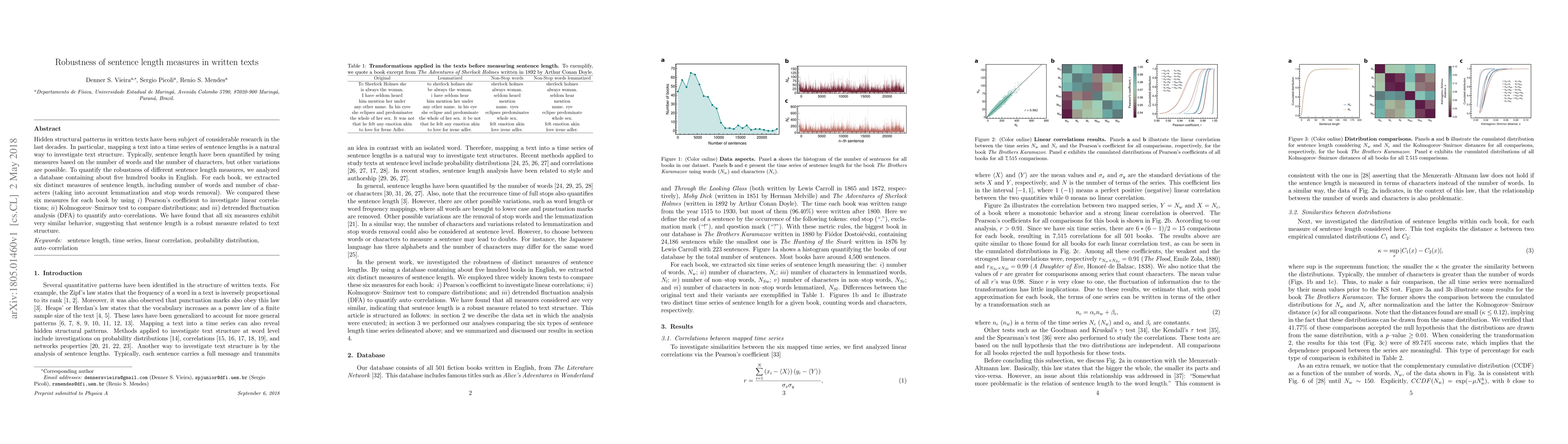 Hidden structural patterns in written texts have been subject of considerable research in the last decades. In particular, mapping a text into a time series of sentence lengths is a natural way to investigate text structure. Typically, sentence length has been quantified by using measures based on the number of words and the number of characters, but other variations are possible. To quantify the robustness of different sentence length measures, we analyzed a database containing about five hundred books in English. For each book, we extracted six distinct measures of sentence length, including number of words and number of characters (taking into account lemmatization and stop words removal). We compared these six measures for each book by using i) Pearson's coefficient to investigate linear correlations; ii) Kolmogorov--Smirnov test to compare distributions; and iii) detrended fluctuation analysis (DFA) to quantify auto-correlations. We have found that all six measures exhibit very similar behavior, suggesting that sentence length is a robust measure related to text structure.
