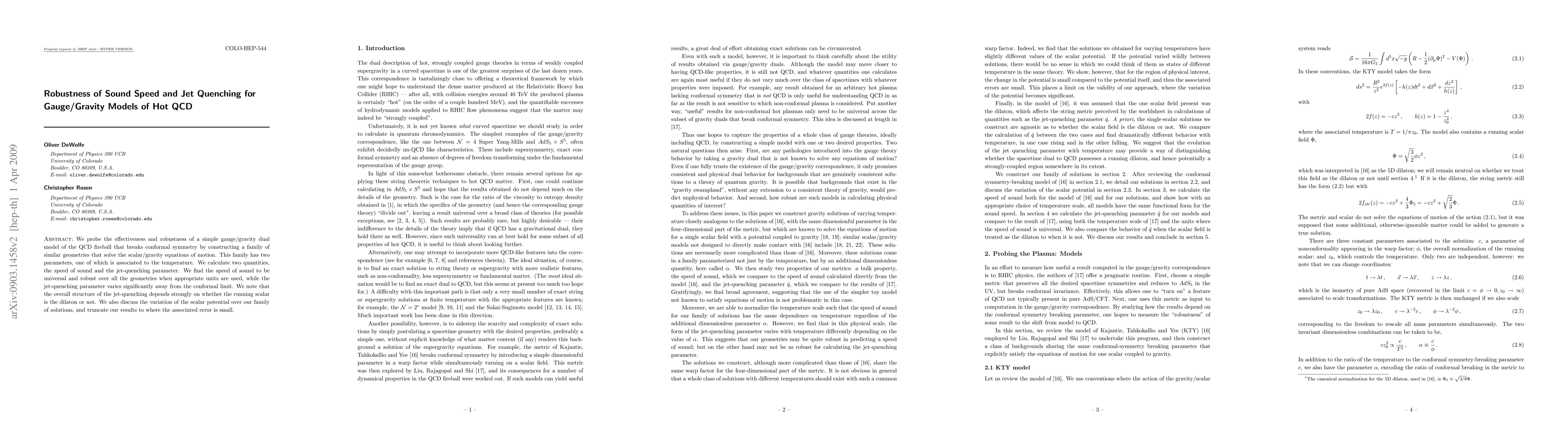 Researchers investigate a gauge/gravity model of the QCD fireball, finding that sound speed is universal and robust, while jet-quenching parameter varies significantly depending on the scalar field.