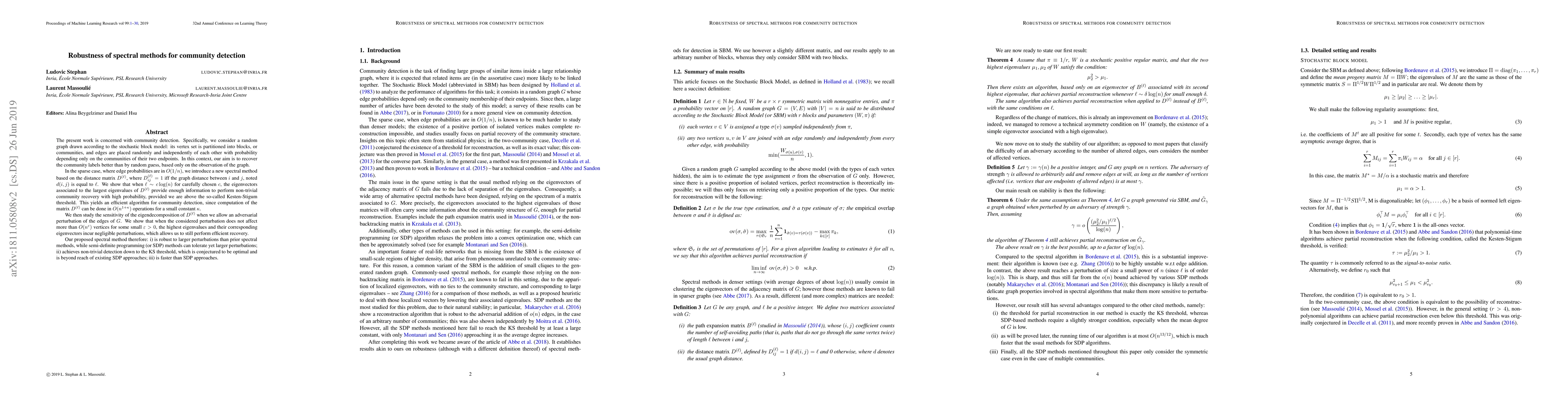 Researchers developed a new spectral method for community detection in sparse graphs, leveraging distance matrices to recover community labels with high accuracy. The approach remains robust against minor edge perturbations, enabling efficient recovery of community structures.
