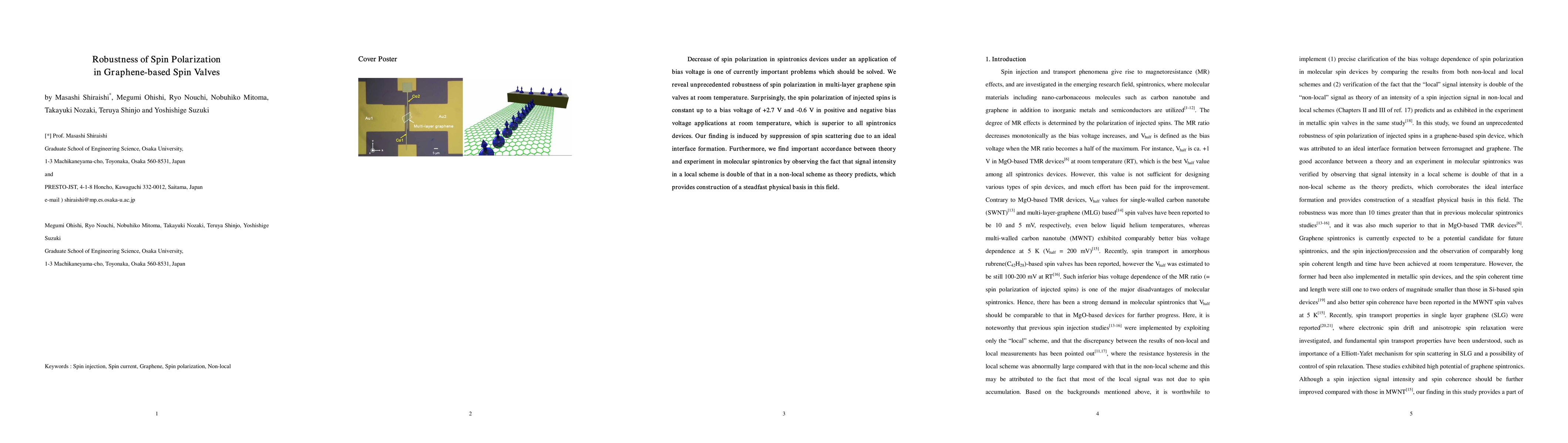 This paper demonstrates the exceptional robustness of spin polarization in multi-layer graphene spin valves at room temperature, maintaining constant polarization under bias voltages up to +2.7 V and -0.6 V. The findings are attributed to the suppression of spin scattering through ideal interface formation, and they align with theoretical predictions in molecular spintronics.