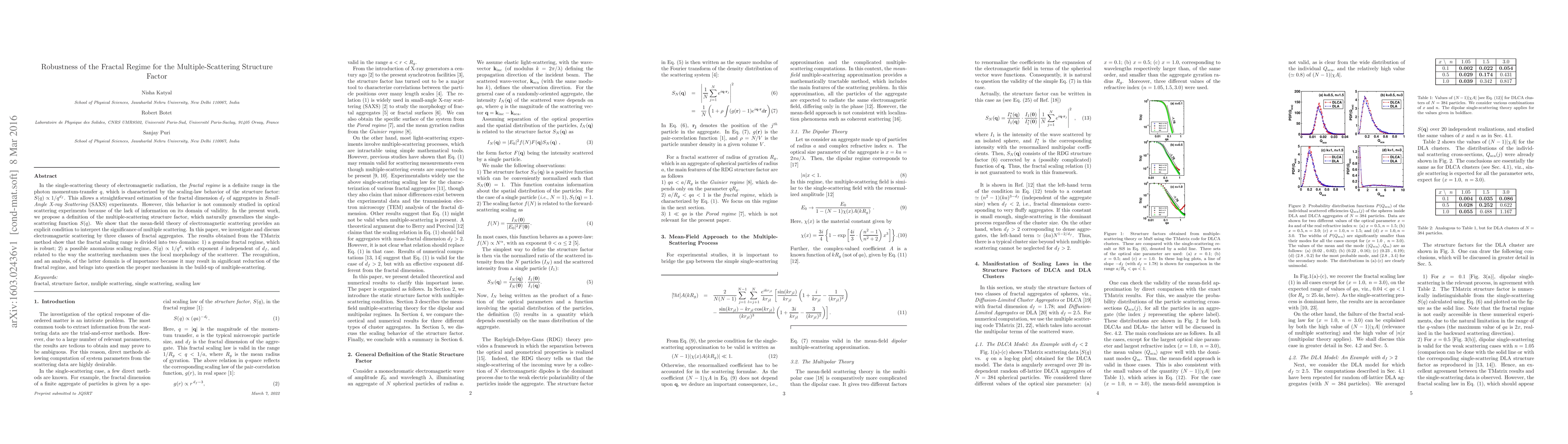 In the single-scattering theory of electromagnetic radiation, the {\it fractal regime} is a definite range in the photon momentum-transfer $q$, which is characterized by the scaling-law behavior of the structure factor: $S(q) \propto 1/q^{d_f}$. This allows a straightforward estimation of the fractal dimension $d_f$ of aggregates in {\it Small-Angle X-ray Scattering} (SAXS) experiments. However, this behavior is not commonly studied in optical scattering experiments because of the lack of information on its domain of validity. In the present work, we propose a definition of the multiple-scattering structure factor, which naturally generalizes the single-scattering function $S(q)$. We show that the mean-field theory of electromagnetic scattering provides an explicit condition to interpret the significance of multiple scattering. In this paper, we investigate and discuss electromagnetic scattering by three classes of fractal aggregates. The results obtained from the TMatrix method show that the fractal scaling range is divided into two domains: 1) a genuine fractal regime, which is robust; 2) a possible anomalous scaling regime, $S(q) \propto 1/q^{\delta}$, with exponent $\delta$ independent of $d_f$, and related to the way the scattering mechanism uses the local morphology of the scatterer. The recognition, and an analysis, of the latter domain is of importance because it may result in significant reduction of the fractal regime, and brings into question the proper mechanism in the build-up of multiple-scattering.