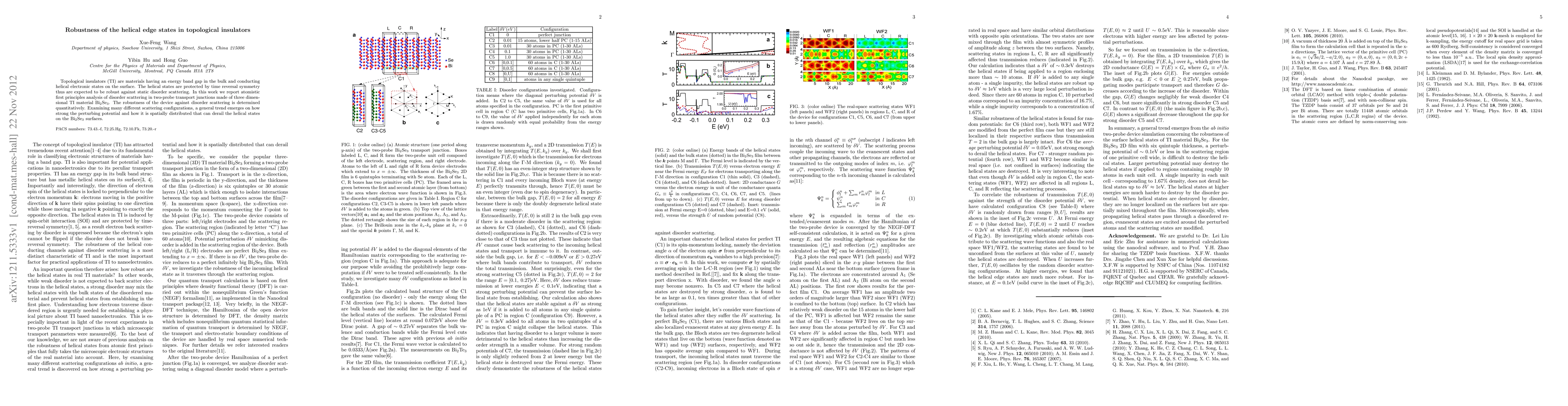 This paper investigates the robustness of helical edge states in topological insulators using first principles analysis of Bi2Se3 under various disorder scattering conditions. It finds that while these states are generally robust, specific configurations of strong and spatially distributed perturbing potentials can disrupt them.