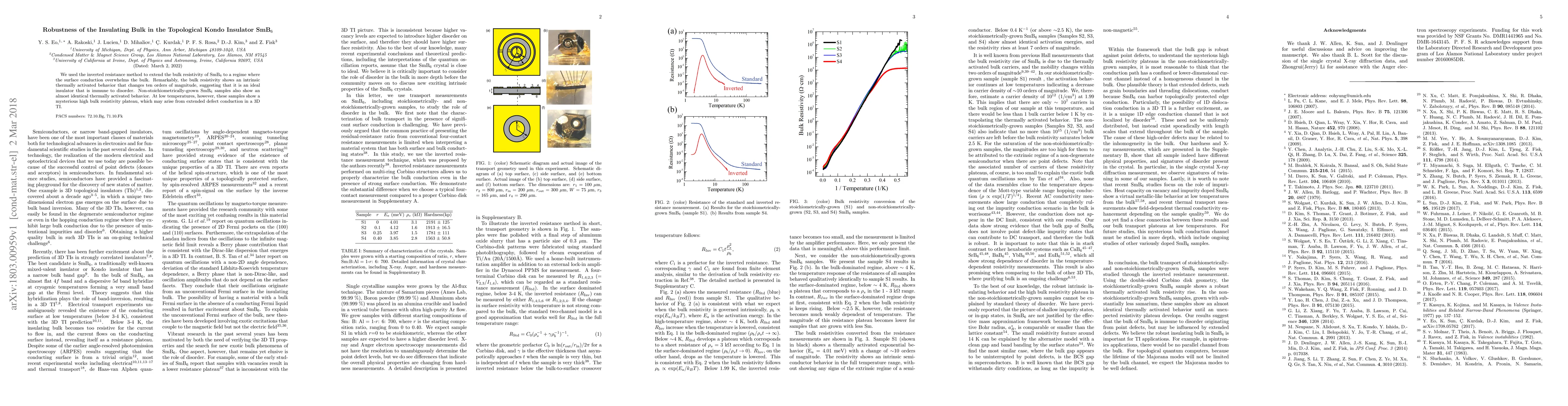 Researchers discovered that topological Kondo insulator SmB6 exhibits intrinsic thermally activated behavior in its bulk resistivity, suggesting it is an ideal insulator immune to disorder. However, samples show a mysterious high bulk resistivity plateau at low temperatures due to extended defect conduction.