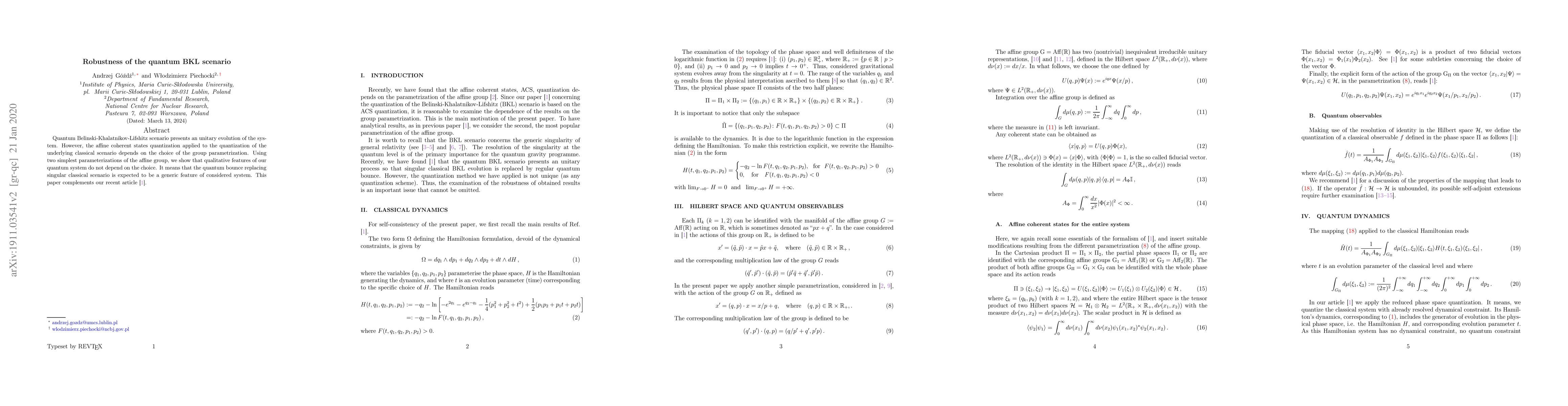 Quantum Belinski-Khalatnikov-Lifshitz scenario presents an unitary evolution of the system. However, the affine coherent states quantization applied to the quantization of the underlying classical scenario depends on the choice of the group parametrization. Using two simplest parameterizations of the affine group, we show that qualitative features of our quantum system do not depend on the choice. It means that the quantum bounce replacing singular classical scenario is expected to be a generic feature of considered system. This paper complements our recent article [1].