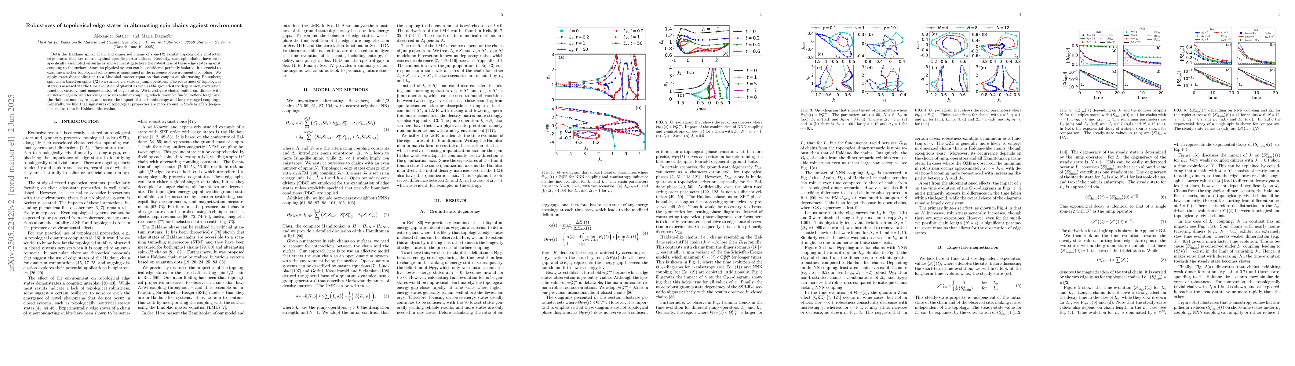 The research employs exact diagonalization applied to a Lindblad master equation to couple an alternating Heisenberg spin chain (based on spins 1/2) to a surface via jump operators, investigating the robustness of topological edge states.