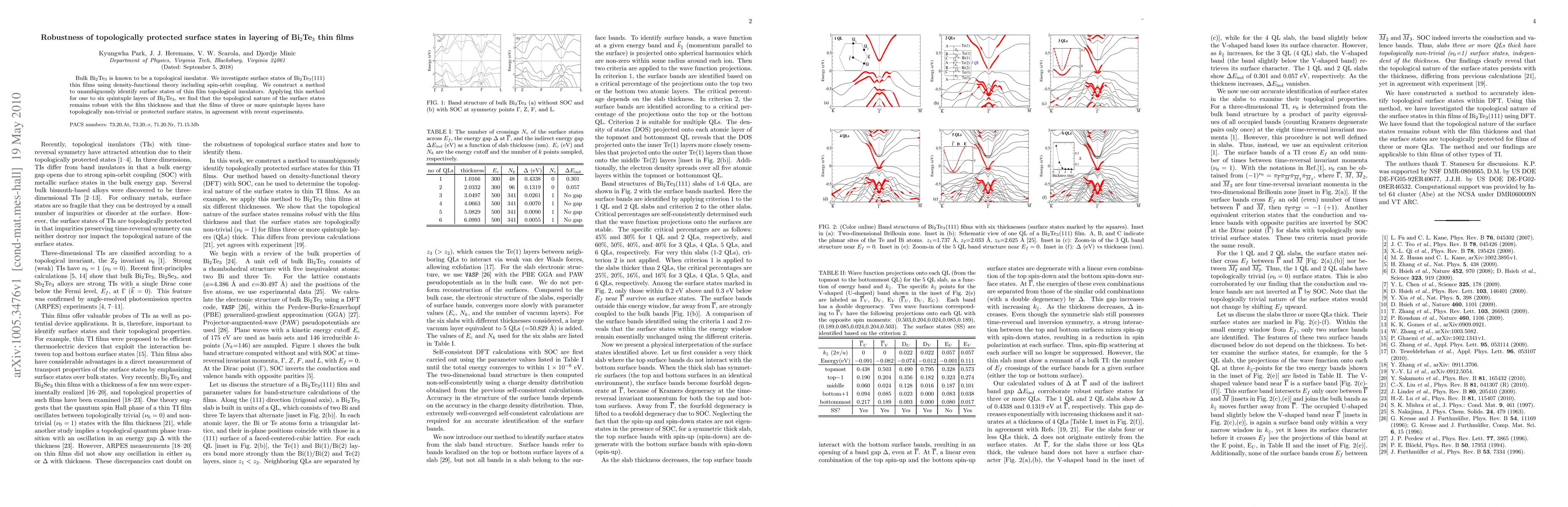 The research demonstrates that the topologically protected surface states of bulk Bi2Te3 remain robust in thin films with one to six quintuple layers, confirming the presence of topologically non-trivial surface states in films with three or more layers through density-functional theory. This finding aligns with recent experimental observations.