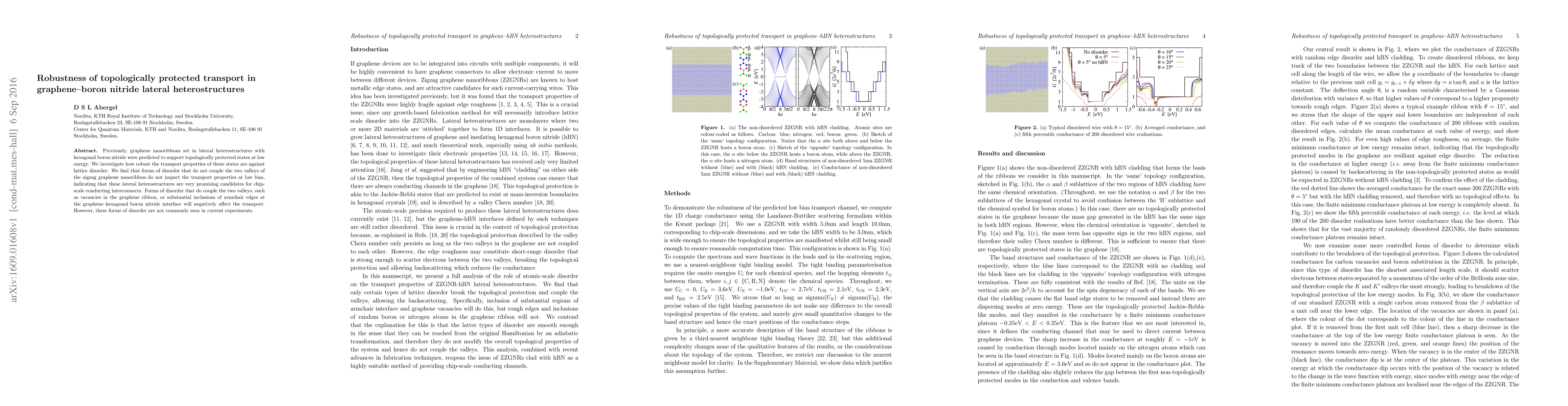 Previously, graphene nanoribbons set in lateral heterostructures with hexagonal boron nitride were predicted to support topologically protected states at low energy. We investigate how robust the transport properties of these states are against lattice disorder. We find that forms of disorder that do not couple the two valleys of the zigzag graphene nanoribbon do not impact the transport properties at low bias, indicating that these lateral heterostructures are very promising candidates for chip-scale conducting interconnects. Forms of disorder that do couple the two valleys, such as vacancies in the graphene ribbon, or substantial inclusions of armchair edges at the graphene-hexagonal boron nitride interface will negatively affect the transport. However, these forms of disorder are not commonly seen in current experiments.