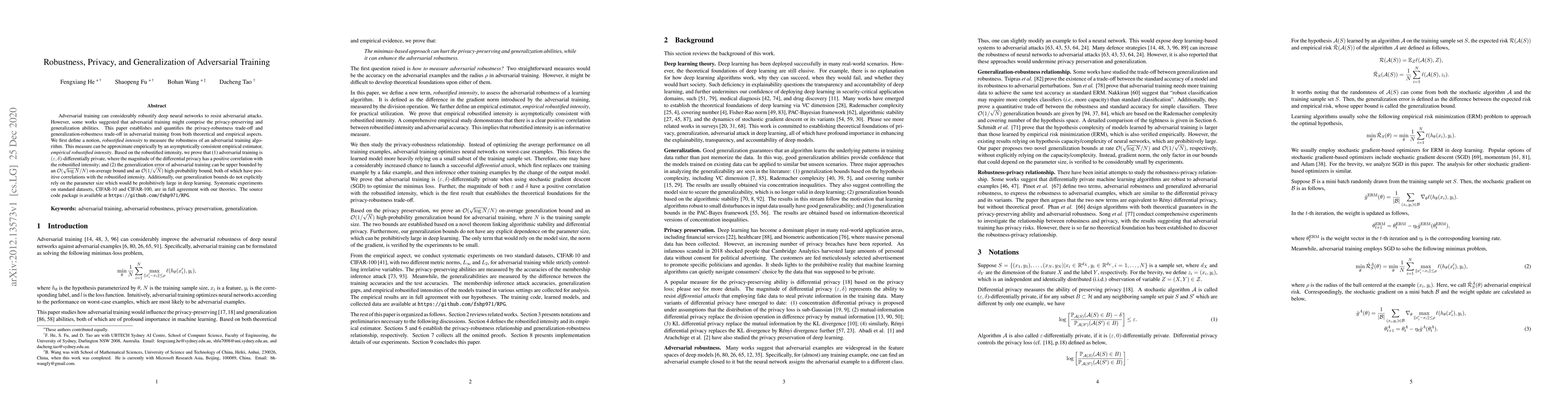 This paper investigates the trade-offs between robustness, privacy, and generalization in adversarial training for deep neural networks. It introduces the concept of robustified intensity to measure robustness and proves that higher robustness correlates with better differential privacy and generalization, with theoretical bounds supported by empirical experiments on CIFAR-10 and CIFAR-100 datasets.