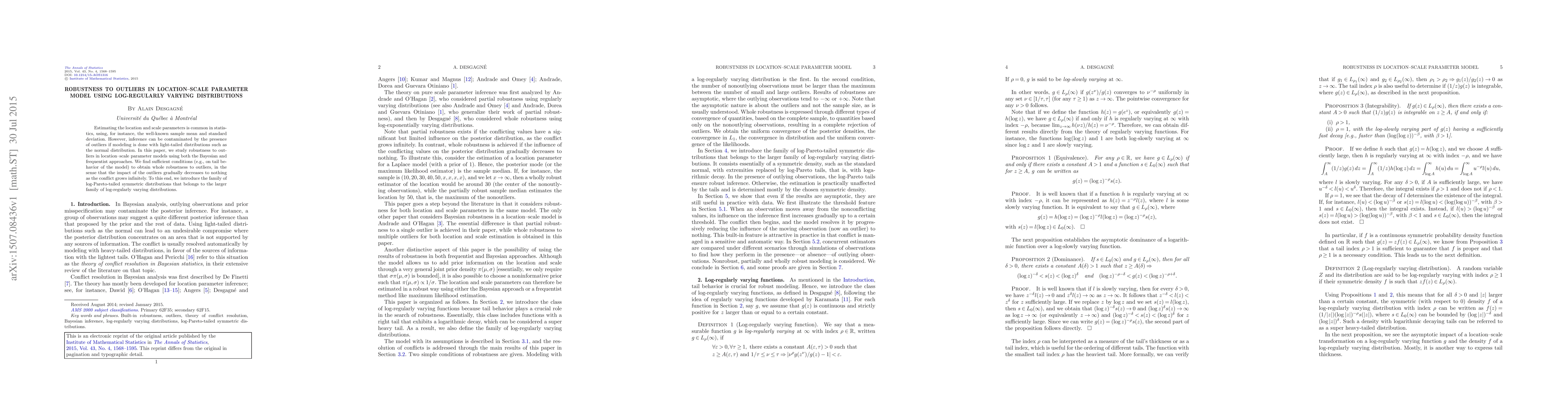 This paper explores robustness to outliers in location-scale parameter models using log-regularly varying distributions, finding sufficient conditions for whole robustness.