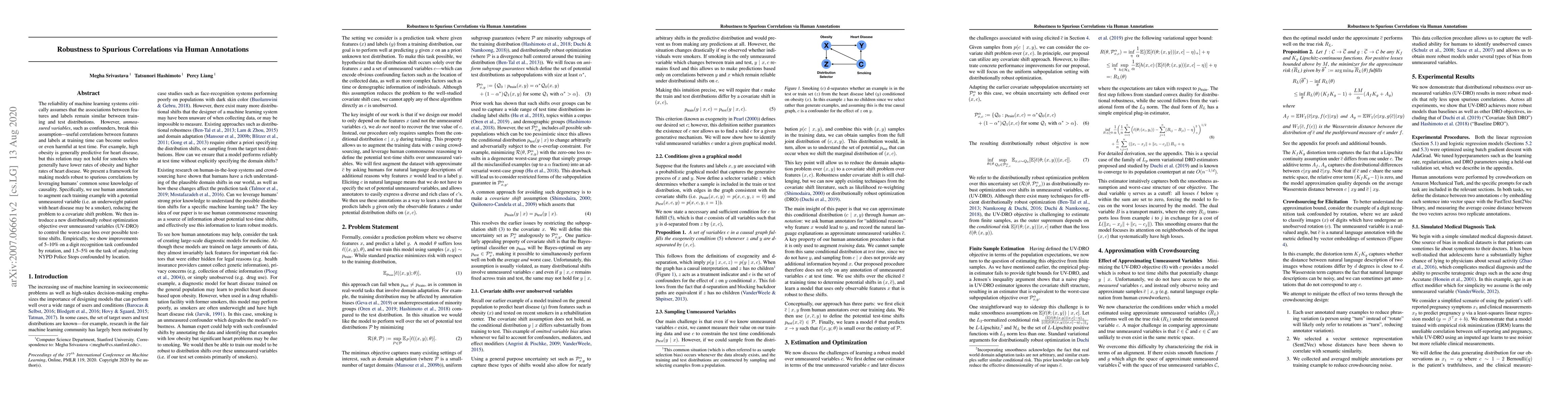 Researchers developed a framework to make machine learning models robust against spurious correlations by leveraging human annotations of potential unmeasured variables. This approach resulted in improvements of 1.5-10% on digit recognition and NYPD Police Stops tasks.