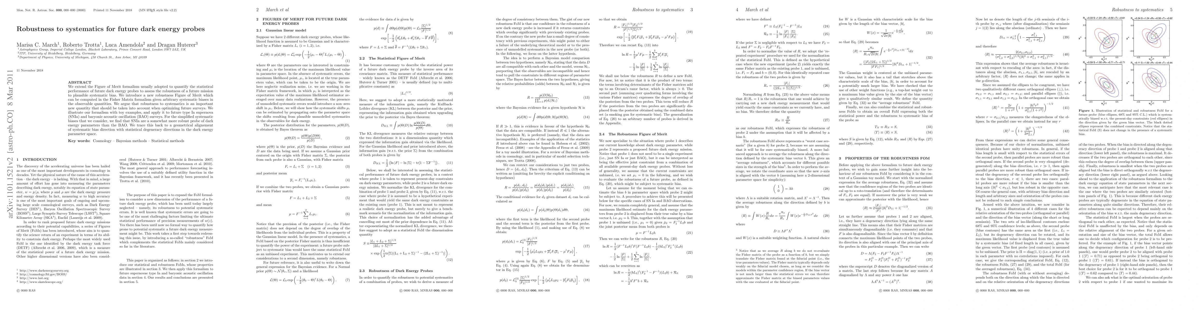 This paper introduces a new Figure of Merit to quantify the robustness of future dark energy probes against systematic biases, applying it to type Ia supernovae and baryonic acoustic oscillation surveys. It finds that supernovae are more robust due to the alignment of systematic bias directions with statistical degeneracies.