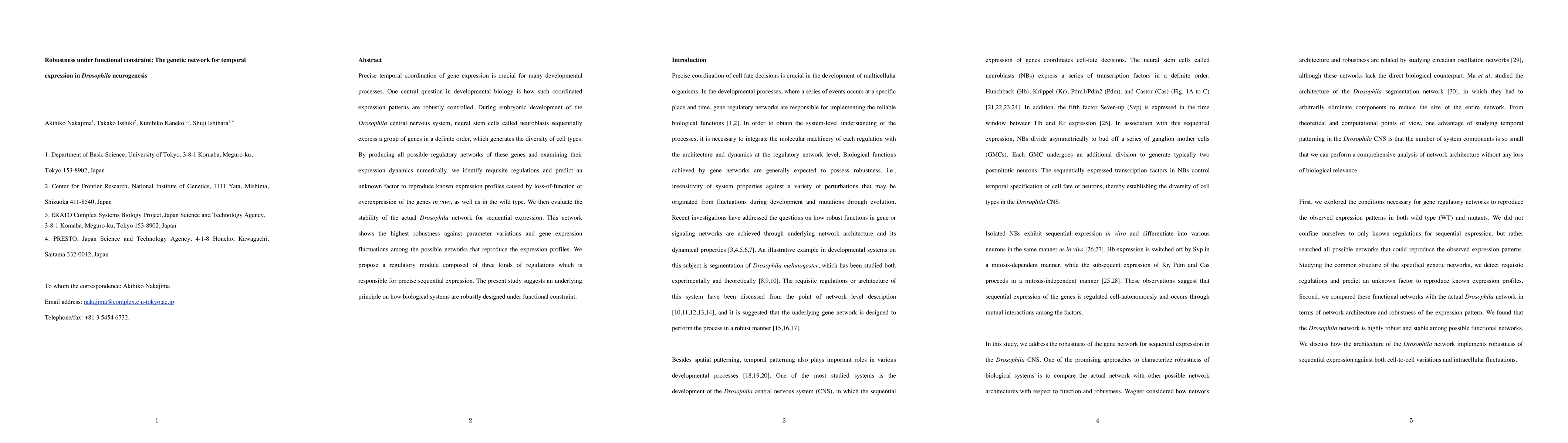 This paper investigates the genetic network responsible for the precise temporal expression of genes during Drosophila neurogenesis, identifying a regulatory module that ensures robustness against variations. The study proposes a three-regulation module that maintains sequential gene expression, highlighting a fundamental principle of biological robustness under functional constraints.