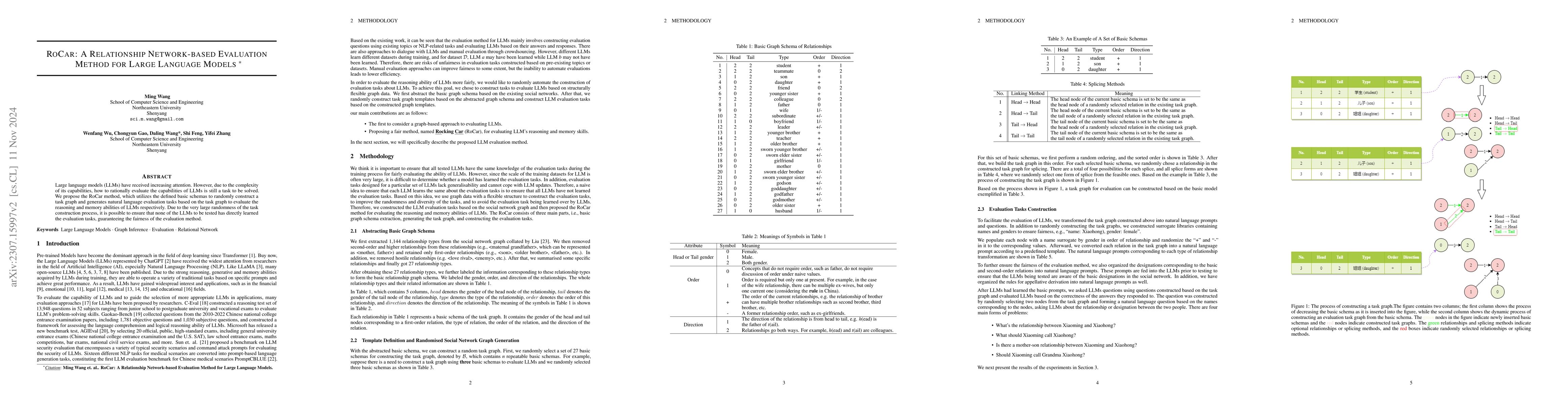 Large language models (LLMs) have received increasing attention. However, due to the complexity of its capabilities, how to rationally evaluate the capabilities of LLMs is still a task to be solved. We propose the RoCar method, which utilizes the defined basic schemas to randomly construct a task graph and generates natural language evaluation tasks based on the task graph to evaluate the reasoning and memory abilities of LLMs respectively. Due to the very large randomness of the task construction process, it is possible to ensure that none of the LLMs to be tested has directly learned the evaluation tasks, guaranteeing the fairness of the evaluation method.