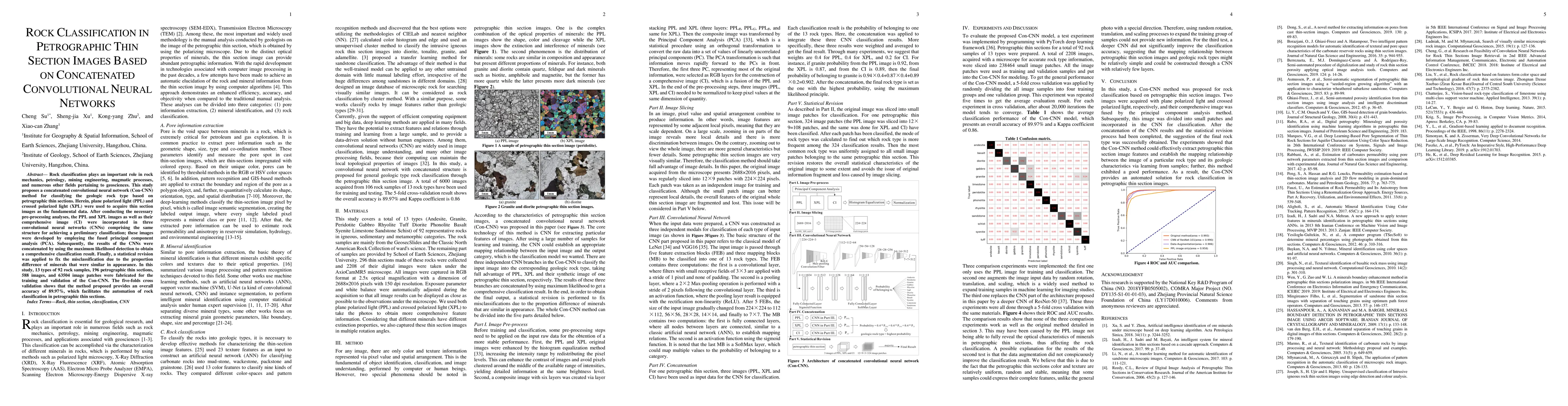 A new method using concatenated convolutional neural networks achieves an 89.97% accuracy in classifying rock types from petrographic thin section images, which can automate rock classification in geosciences.
