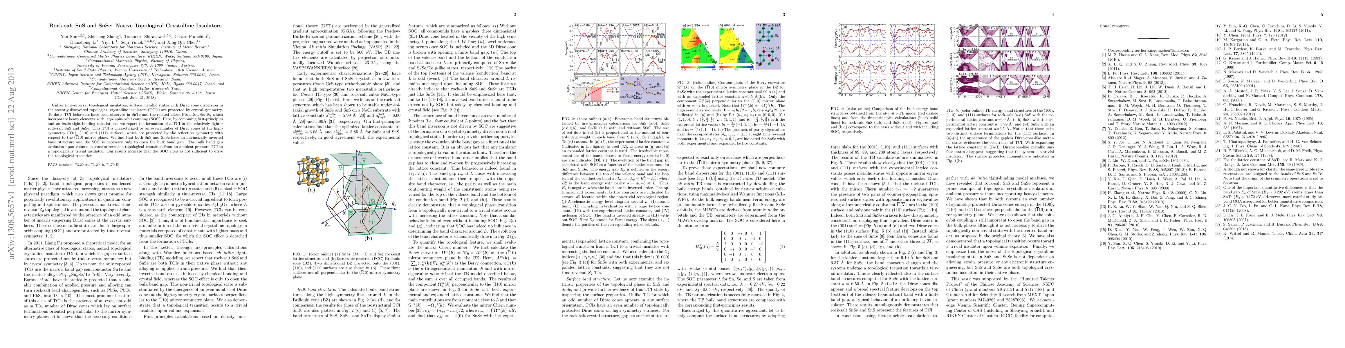 This paper reports the identification of SnS and SnSe as topological crystalline insulators (TCIs) in the rock-salt structure, characterized by Dirac cones protected by crystal symmetry. Unlike previous TCIs, these materials do not require heavy elements for spin-orbit coupling, highlighting a new class of TCIs driven by reflection symmetry.