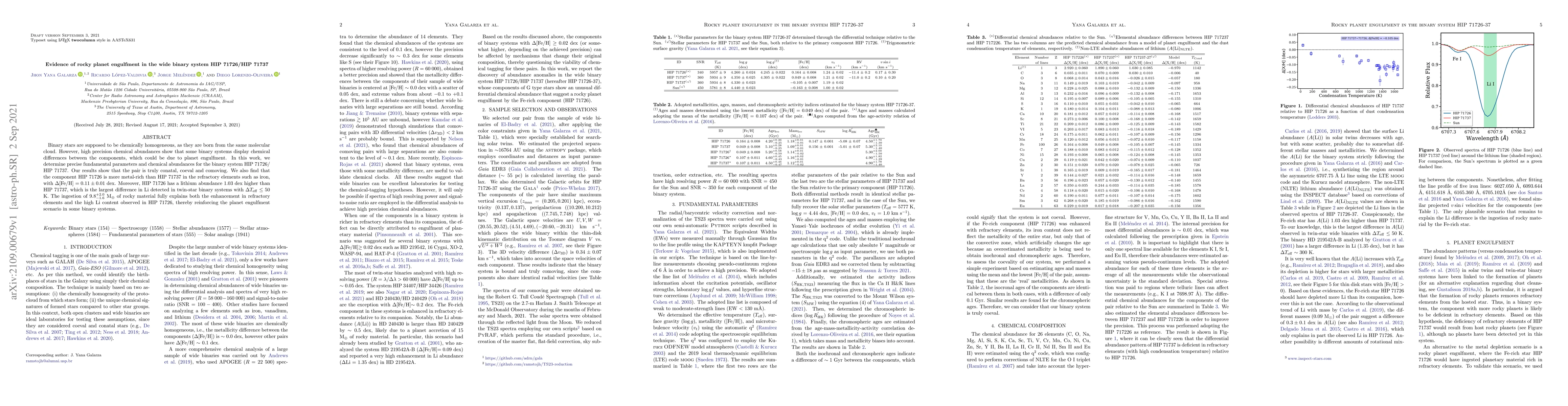 Binary stars are supposed to be chemically homogeneous, as they are born from the same molecular cloud. However, high precision chemical abundances show that some binary systems display chemical differences between the components, which could be due to planet engulfment. In this work, we determine precise fundamental parameters and chemical abundances for the binary system HIP 71726/ HIP 71737. Our results show that the pair is truly conatal, coeval and comoving. We also find that the component HIP 71726 is more metal-rich than HIP 71737 in the refractory elements such as iron, with $\Delta$[Fe/H] $= 0.11 \pm 0.01$ dex. Moreover, HIP 71726 has a lithium abundance 1.03 dex higher than HIP 71737, which is the largest difference in Li detected in twin-star binary systems with $\Delta$ $T_{\rm eff}$ $\leq$ 50 K. The ingestion of $9.8^{+2.0}_{-1.6}$ M$_{\oplus}$ of rocky material fully explains both the enhancement in refractory elements and the high Li content observed in HIP 71726, thereby reinforcing the planet engulfment scenario in some binary systems.