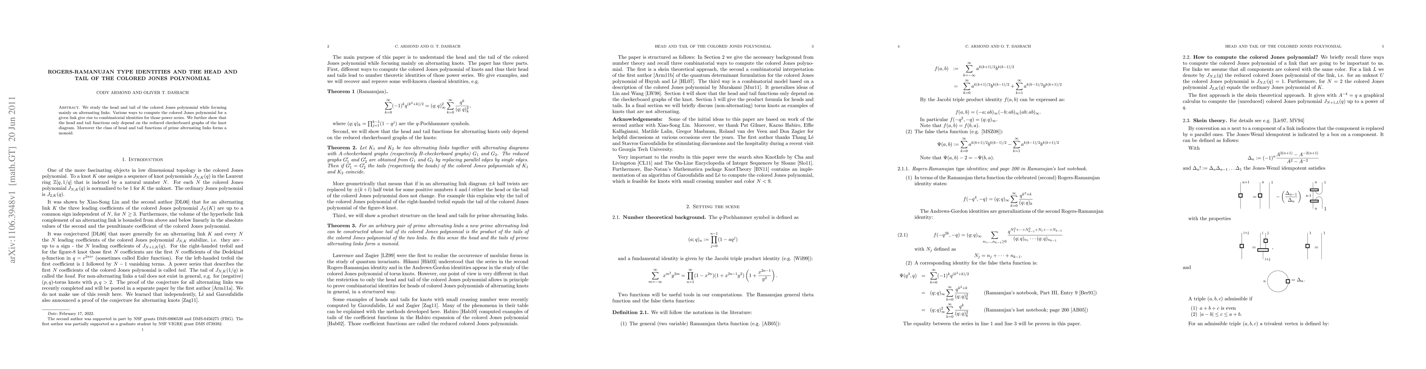 We study the head and tail of the colored Jones polynomial while focusing mainly on alternating links. Various ways to compute the colored Jones polynomial for a given link give rise to combinatorial identities for those power series. We further show that the head and tail functions only depend on the reduced checkerboard graphs of the knot diagram. Moreover the class of head and tail functions of prime alternating links forms a monoid.