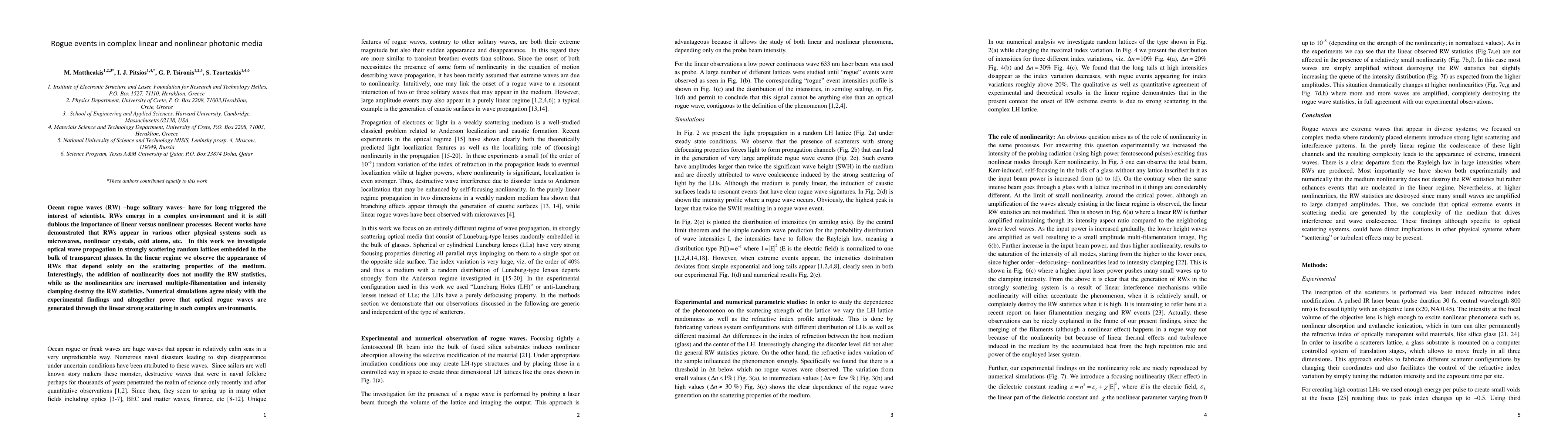Demonstrates that rogue waves in optical systems are generated through linear strong scattering in complex environments, providing insights into RW formation mechanisms.