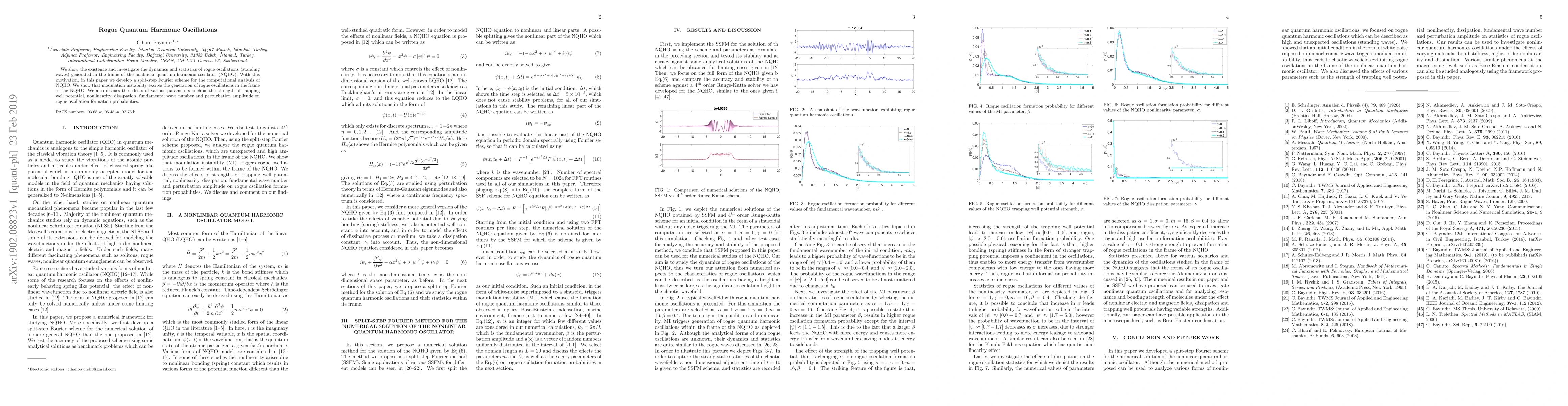 We show the existence and investigate the dynamics and statistics of rogue oscillations (standing waves) generated in the frame of the nonlinear quantum harmonic oscillator (NQHO). With this motivation, in this paper, we develop a split-step Fourier scheme for the computational analysis of NQHO. We show that modulation instability excites the generation of rogue oscillations in the frame of the NQHO. We also discuss the effects of various parameters such as the strength of trapping well potential, nonlinearity, dissipation, fundamental wave number and perturbation amplitude on rogue oscillation formation probabilities.