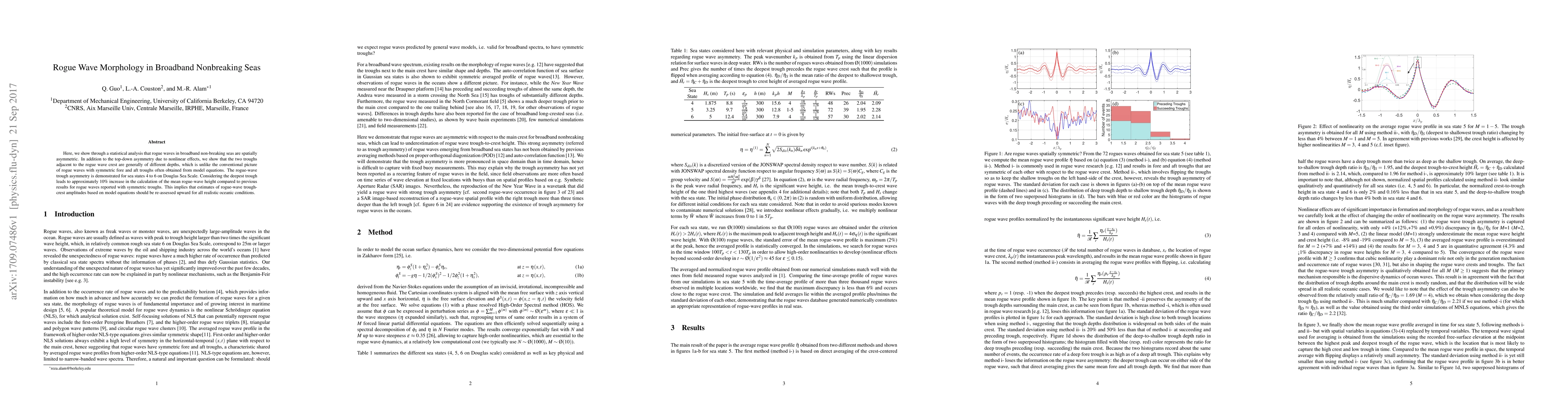 Rogue waves in broadband non-breaking seas have spatially asymmetric troughs with varying depths, leading to a 10% increase in estimated mean rogue-wave height.