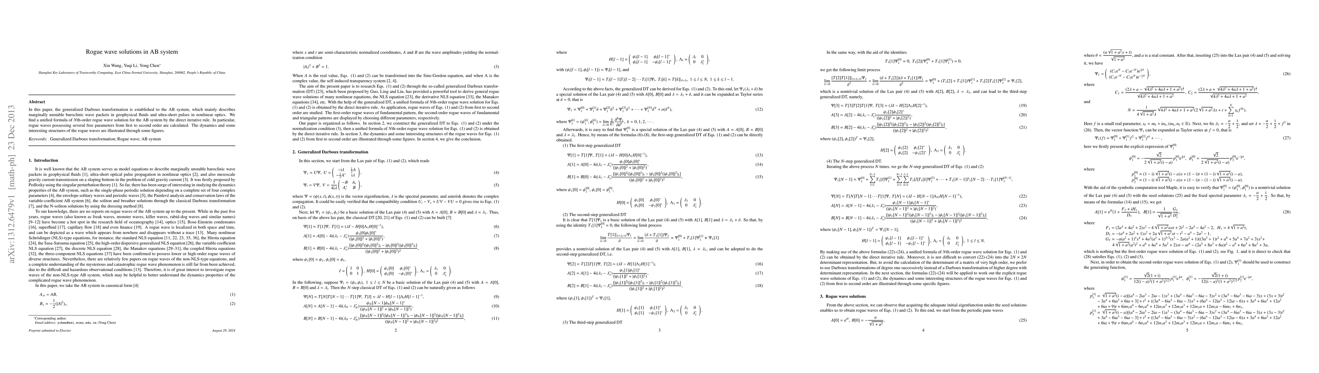 This paper develops a generalized Darboux transformation for the AB system to describe rogue wave solutions, finding a unified Nth-order rogue wave formula. It illustrates the dynamics and structures of these rogue waves, which apply to both geophysical fluids and nonlinear optics.