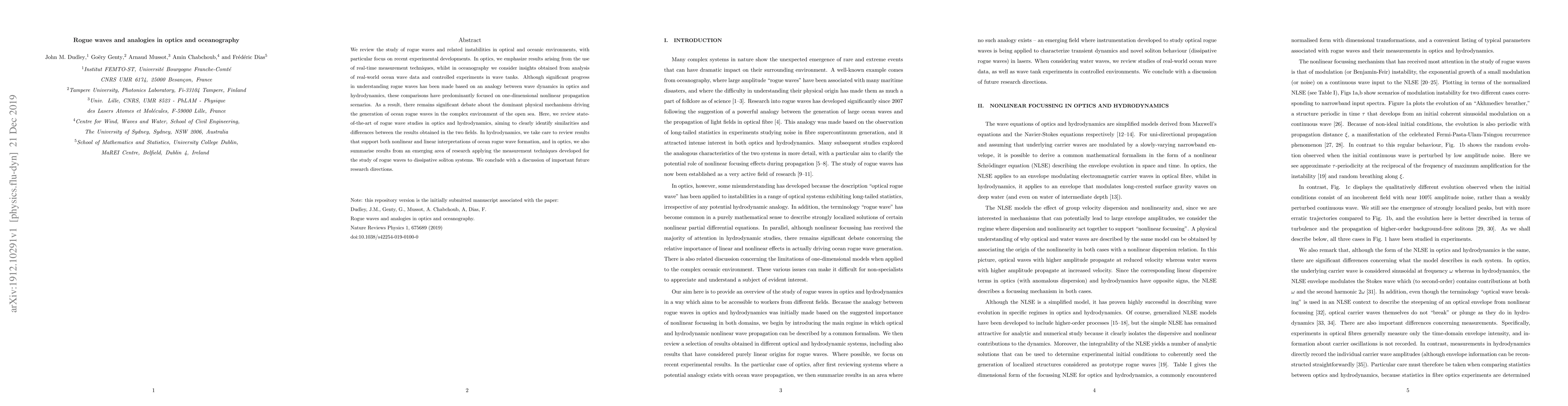 This paper reviews recent advancements in understanding rogue waves in both optical and oceanic contexts, comparing experimental findings from real-time measurements in optics and oceanographic data analysis. It highlights the ongoing debate about the mechanisms behind rogue wave generation in the open sea and suggests future research directions to bridge gaps in understanding between these fields.