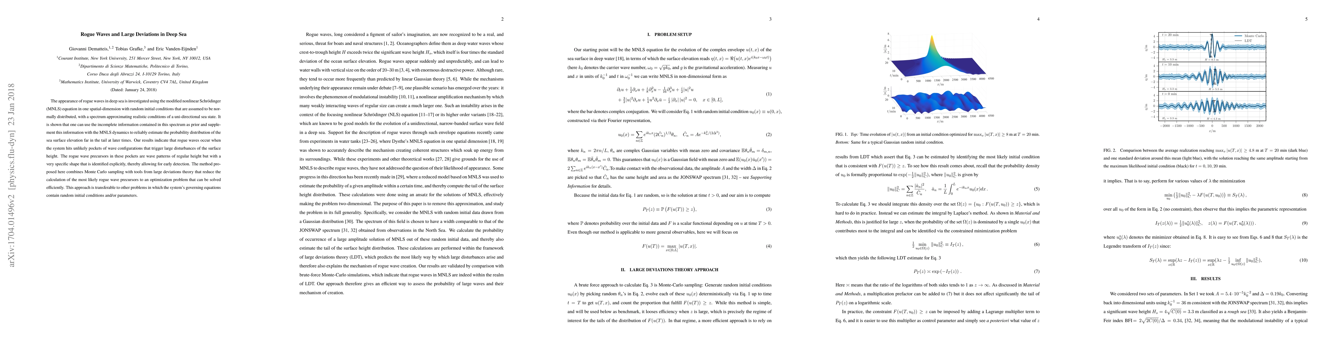 Researchers used a modified nonlinear equation to study rogue waves in deep sea, finding that rare pockets of wave configurations trigger large disturbances. They developed an efficient method to detect rogue waves by analyzing their precursors.