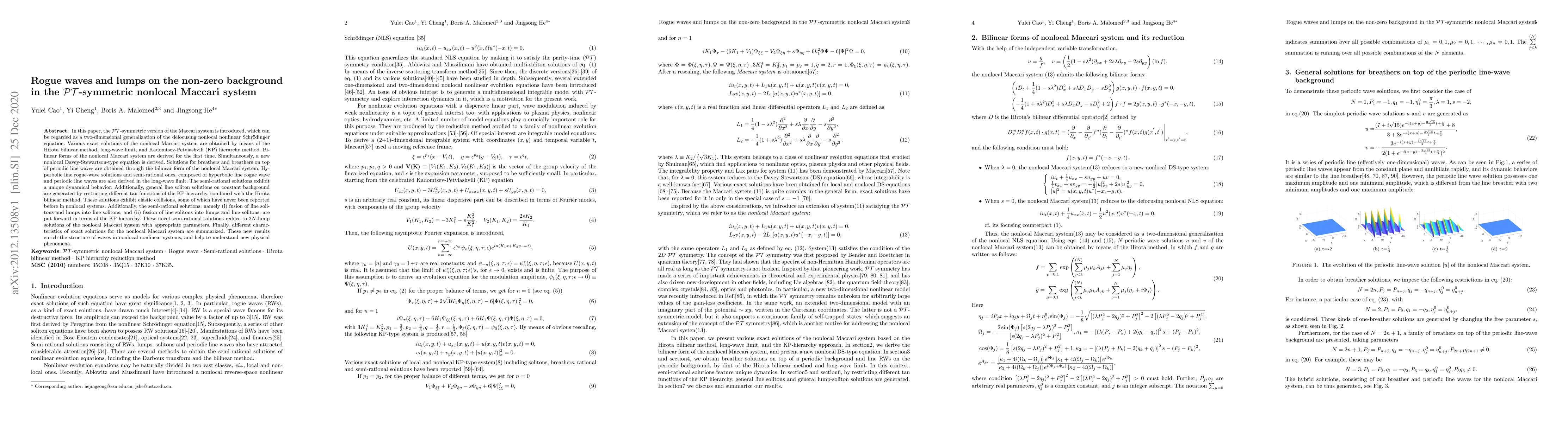 In this paper, the PT -symmetric version of the Maccari system is introduced, which can be regarded as a two-dimensional generalization of the defocusing nonlocal nonlinear Schrodinger equation. Various exact solutions of the nonlocal Maccari system are obtained by means of the Hirota bilinear method, long-wave limit, and Kadomtsev-Petviashvili (KP) hierarchy method. Bilinear forms of the nonlocal Maccari system are derived for the first time. Simultaneously, a new nonlocal Davey-Stewartson-type equation is derived. Solutions for breathers and breathers on top of periodic line waves are obtained through the bilinear form of the nonlocal Maccari system. Hyperbolic line rogue-wave solutions and semi-rational ones, composed of hyperbolic line rogue wave and periodic line waves are also derived in the long-wave limit. The semi-rational solutions exhibit a unique dynamical behavior. Additionally, general line soliton solutions on constant background are generated by restricting different tau-functions of the KP hierarchy, combined with the Hirota bilinear method. These solutions exhibit elastic collisions, some of which have never been reported before in nonlocal systems. Additionally, the semi-rational solutions, namely (i) fusion of line solitons and lumps into line solitons, and (ii) fission of line solitons into lumps and line solitons, are put forward in terms of the KP hierarchy. These novel semi-rational solutions reduce to 2N-lump solutions of the nonlocal Maccari system with appropriate parameters. Finally, different characteristics of exact solutions for the nonlocal Maccari system are summarized. These new results enrich the structure of waves in nonlocal nonlinear systems, and help to understand new physical phenomena.
