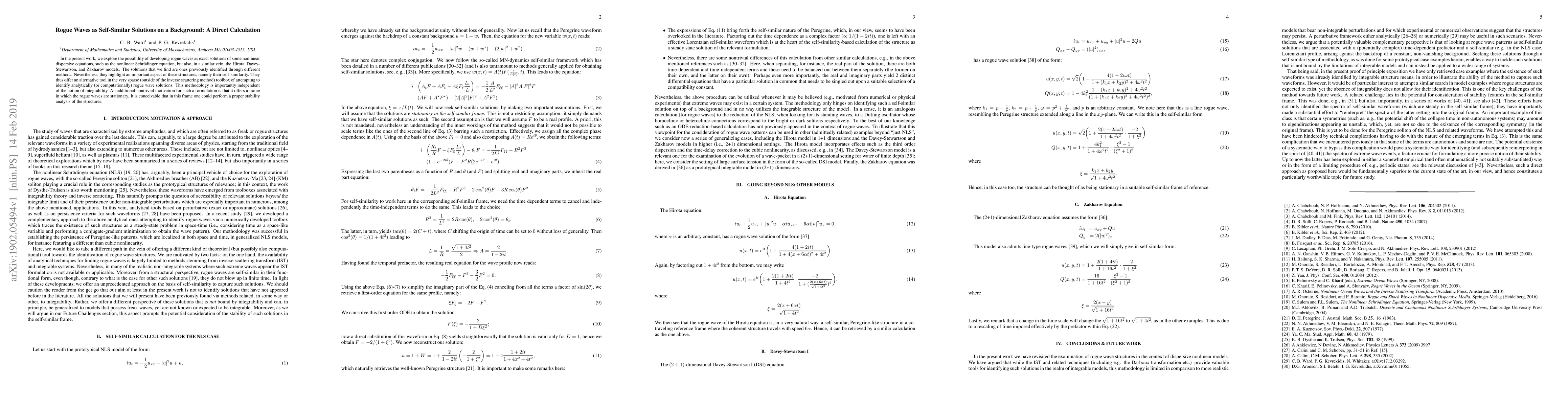 This paper investigates rogue waves as self-similar solutions to nonlinear dispersive equations, including the nonlinear Schrödinger, Hirota, Davey-Stewartson, and Zakharov models, offering an alternative method to identify these solutions independent of integrability and allowing for potential stability analysis.