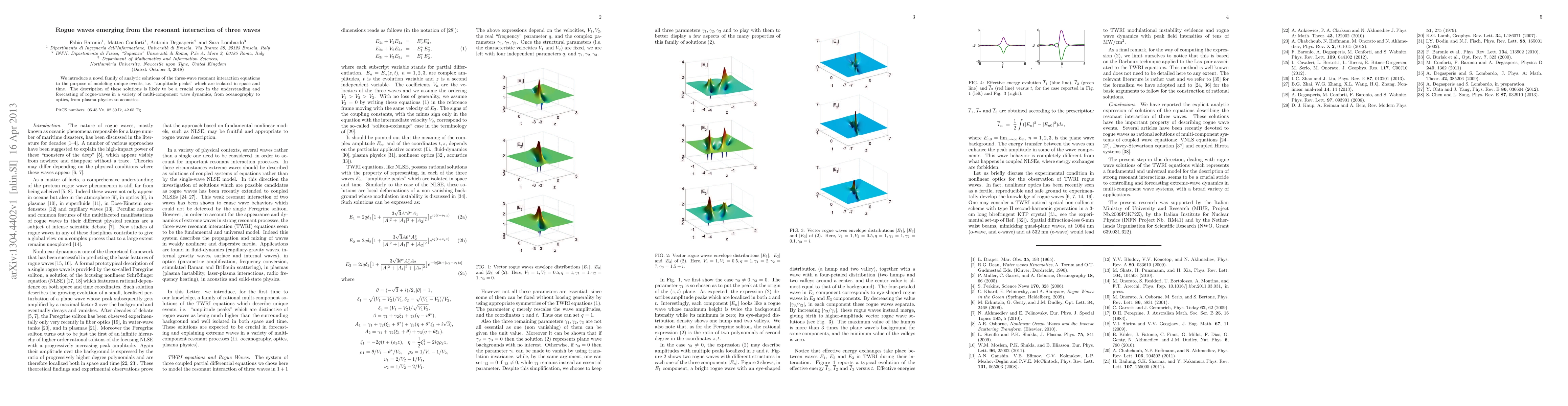 This paper presents new analytic solutions for three-wave resonant interactions, modeling isolated "amplitude peaks" known as rogue waves. These solutions are essential for understanding and predicting rogue waves across various fields including oceanography, optics, plasma physics, and acoustics.