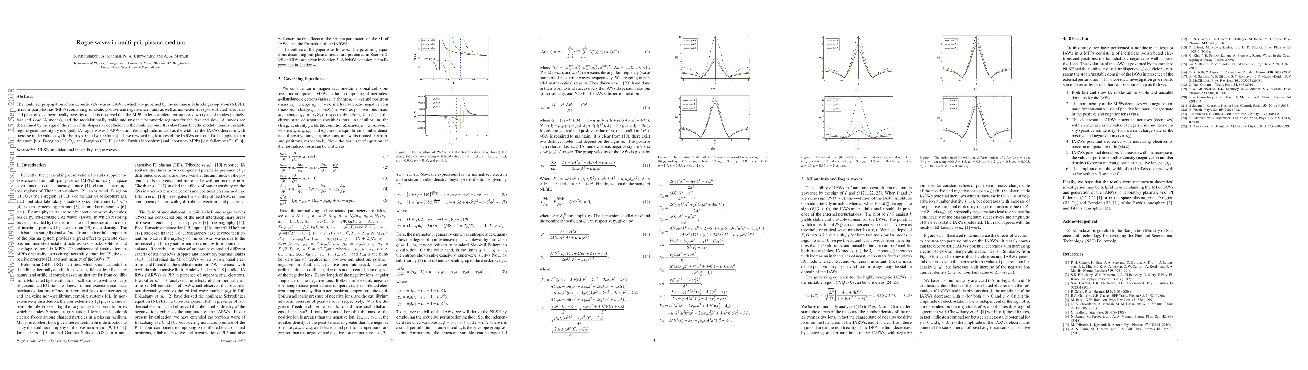 Researchers investigate nonlinear propagation of ion-acoustic waves in multi-pair plasmas and discover new features of rogue waves that can occur in space and laboratory conditions.