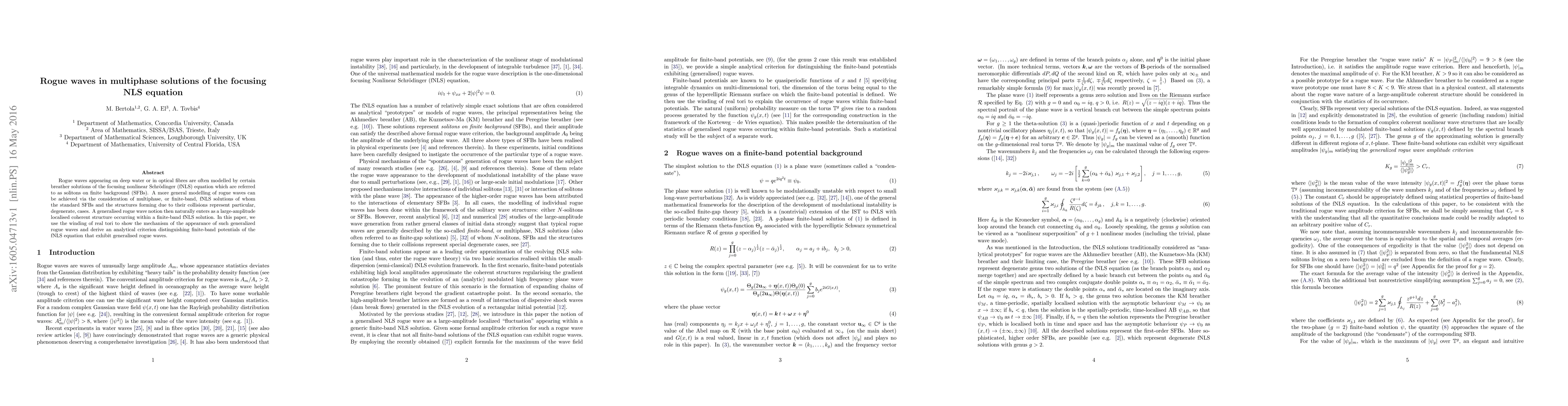Rogue waves appearing on deep water or in optical fibres are often modelled by certain breather solutions of the focusing nonlinear Schr\"odinger (fNLS) equation which are referred to as solitons on finite background (SFBs). A more general modelling of rogue waves can be achieved via the consideration of multiphase, or finite-band, fNLS solutions of whom the standard SFBs and the structures forming due to their collisions represent particular, degenerate, cases. A generalised rogue wave notion then naturally enters as a large-amplitude localised coherent structure occurring within a finite-band fNLS solution. In this paper, we use the winding of real tori to show the mechanism of the appearance of such generalized rogue waves and derive an analytical criterion distinguishing finite-band potentials of the fNLS equation that exhibit generalised rogue waves.