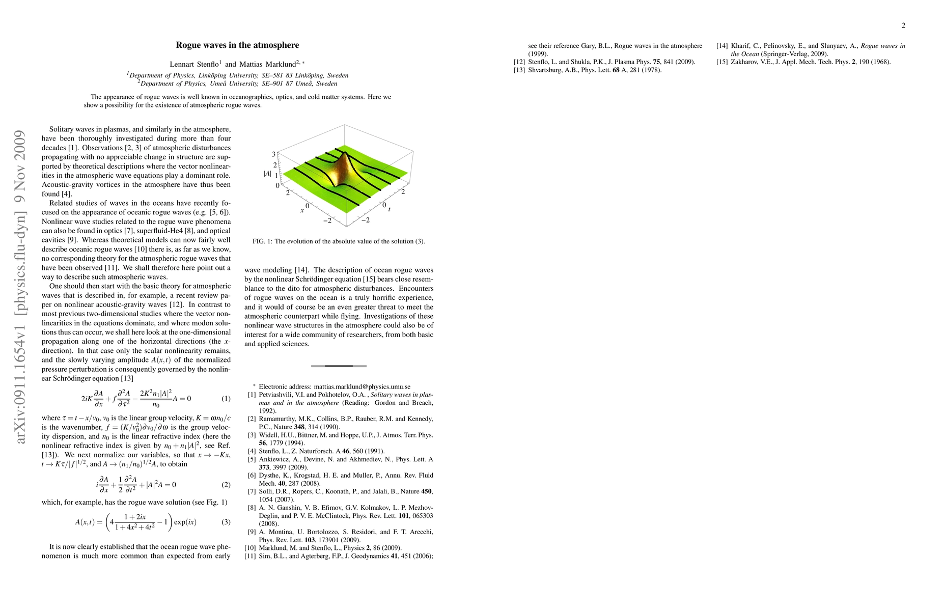 Summary: This paper explores the potential for rogue waves—rare, unusually large waves—in the atmosphere, extending the concept known in oceanography and other fields to atmospheric phenomena. The findings suggest that atmospheric conditions could support the formation of these extraordinary events.
