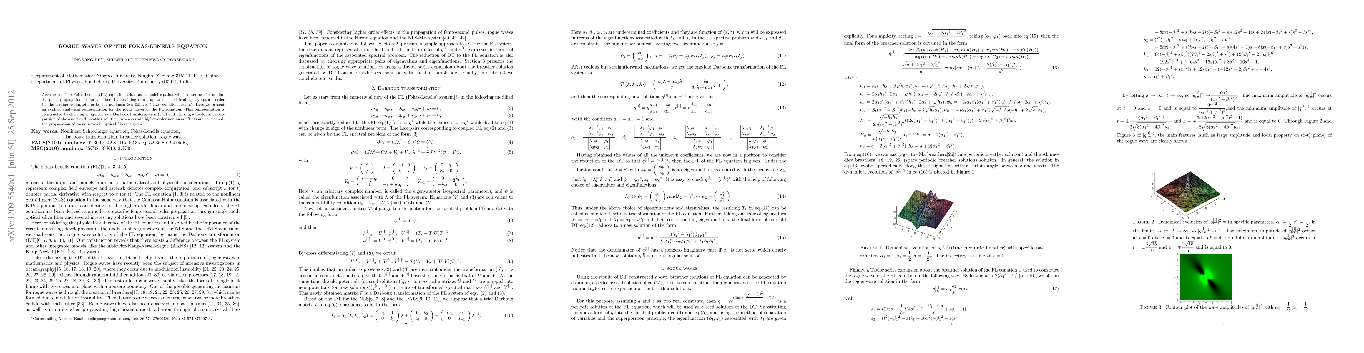 This paper presents an analytical representation for rogue waves in the Fokas-Lenells equation, which models nonlinear pulse propagation in optical fibers. The authors derive this representation using a Darboux transformation and a Taylor series expansion of the breather solution to describe the propagation of rogue waves under higher-order nonlinear effects.