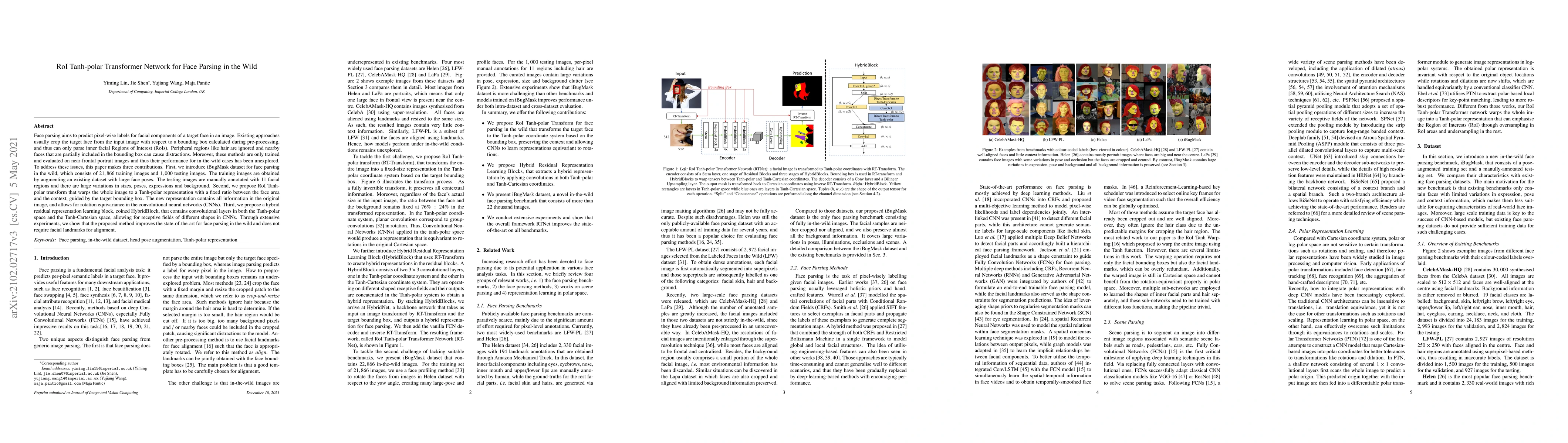 This paper introduces a RoI Tanh-polar Transformer Network for face parsing in the wild, addressing limitations of existing methods that focus only on cropped faces. It presents the iBugMask dataset for diverse face parsing scenarios and proposes a RoI Tanh-polar transform and HybridBlock for improved parsing performance without requiring facial landmarks.