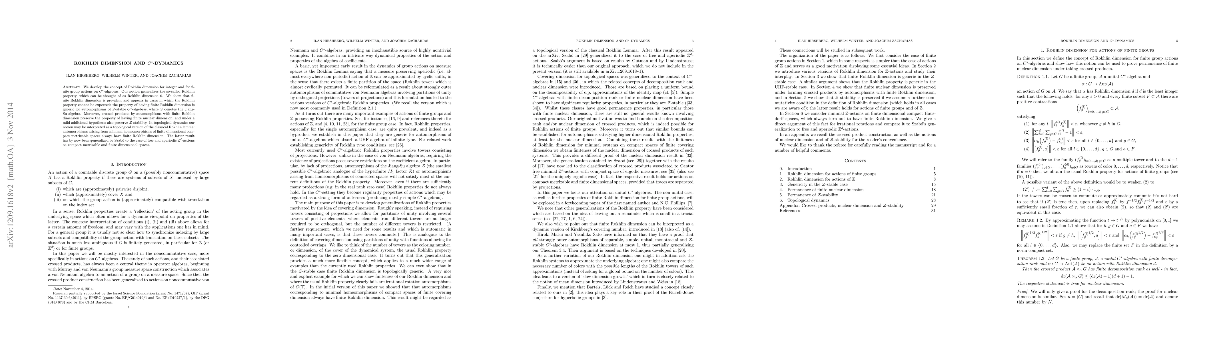 This paper introduces the concept of Rokhlin dimension for group actions on C*-algebras, showing it is prevalent and generic for automorphisms of Z-stable C*-algebras. It also demonstrates that finite Rokhlin dimension preserves nuclear dimension and Z-stability under mild conditions, and relates it to topological dynamics through the classical Rokhlin lemma.