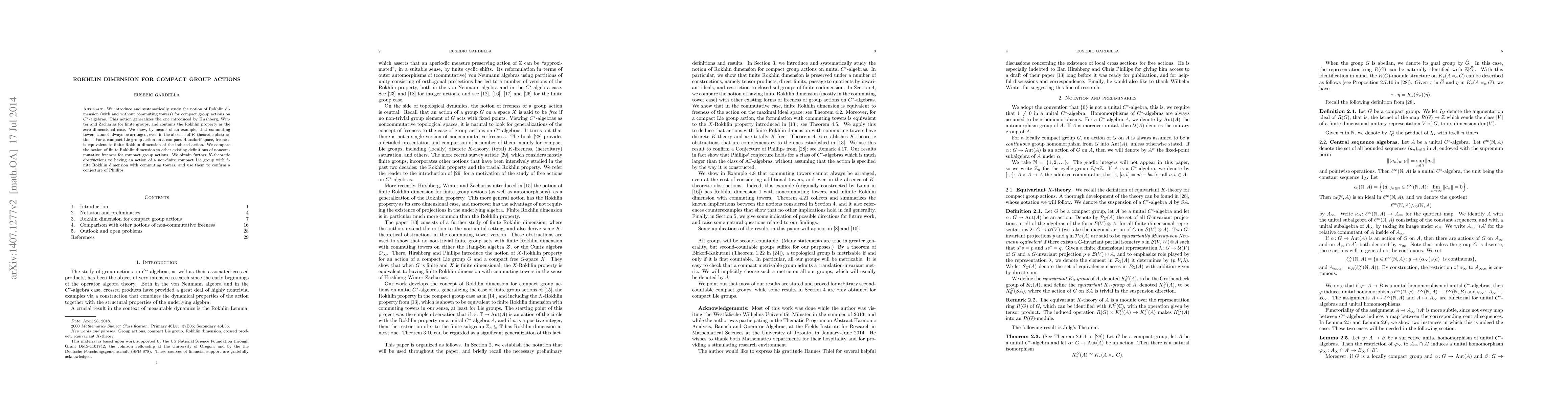 This paper introduces the concept of Rokhlin dimension for compact group actions on $C^*$-algebras, generalizing existing notions for finite groups. It demonstrates the limitations of commuting towers and explores the equivalence of freeness to finite Rokhlin dimension for compact Lie group actions on compact Hausdorff spaces. It also provides $K$-theoretic obstructions and confirms a conjecture by Phillips regarding actions of non-finite compact Lie groups.