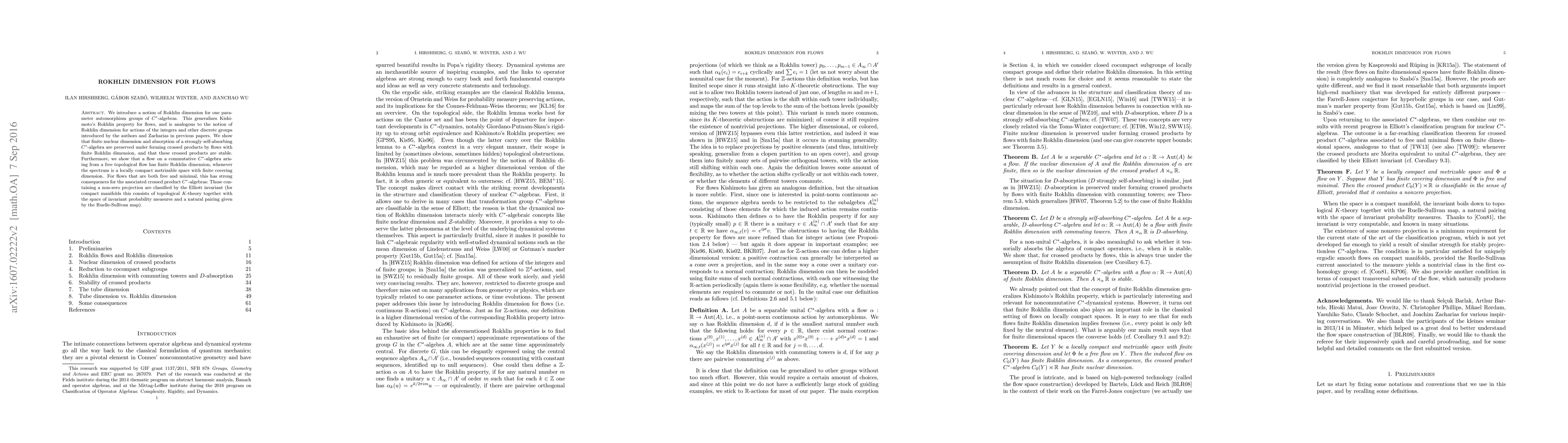 Researchers introduce a Rokhlin dimension for flows in C*-algebras, showing that certain properties like finite nuclear dimension and absorption are preserved under crossed products with flows of finite Rokhlin dimension.