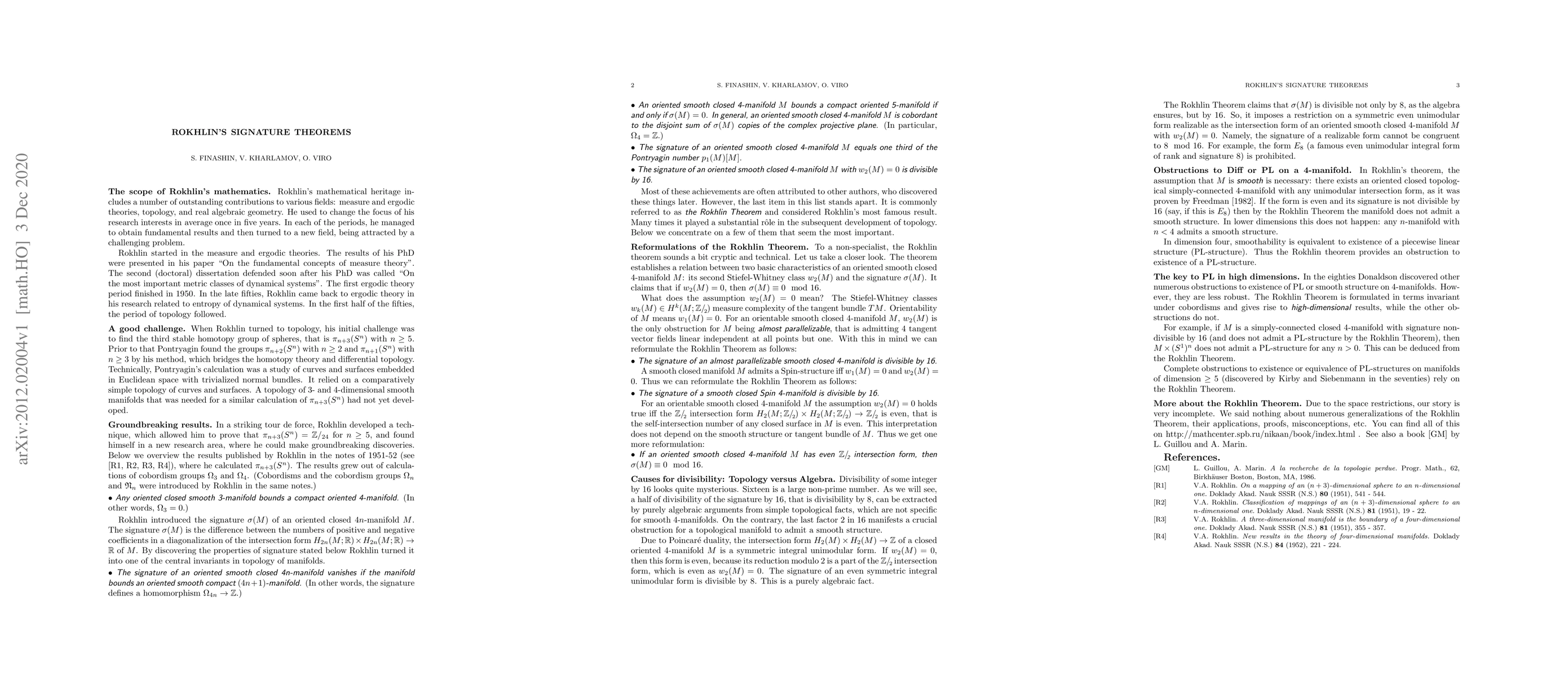 This note is written for a book dedicated to outstanding St-Petersburg mathematicians and timed to the ICM-2022 in St-Petersburg. In accordance with the plan of ICM-organizers, we try to tell about one of the most prominent Rokhlin's achievements in an accessible form and respecting the allowed volume.