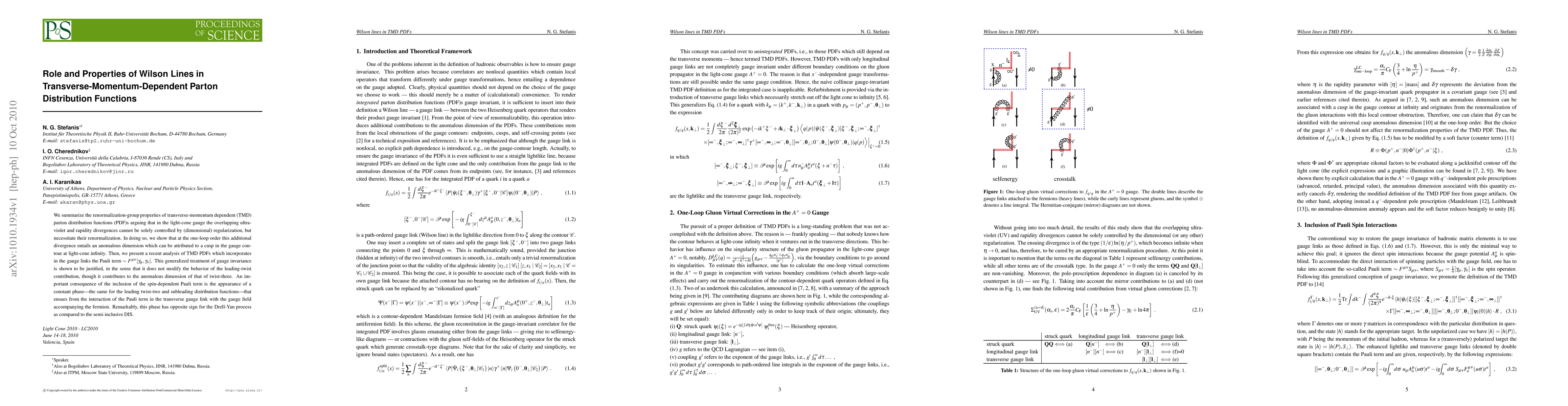 Research paper explores the role of Wilson lines in transverse-momentum-dependent parton distribution functions, revealing the need for renormalization and a constant phase difference between processes.