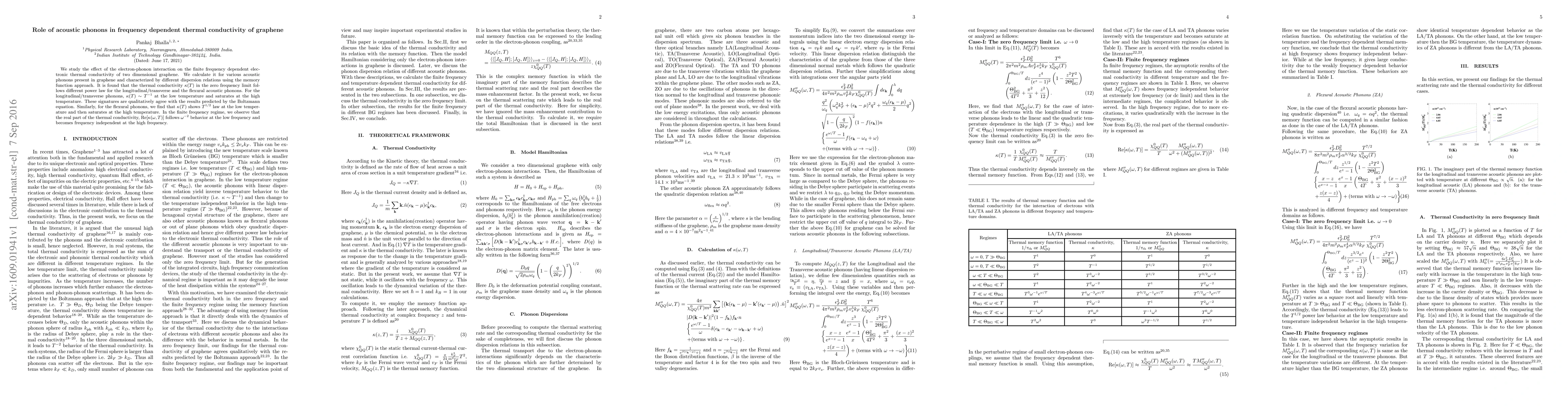 This study investigates the influence of electron-phonon interactions on graphene's frequency-dependent thermal conductivity, revealing distinct power law behaviors for longitudinal/transverse and flexural acoustic phonons. The findings confirm theoretical predictions from the Boltzmann equation and show $\kappa(T)$'s dependence on both temperature and frequency.