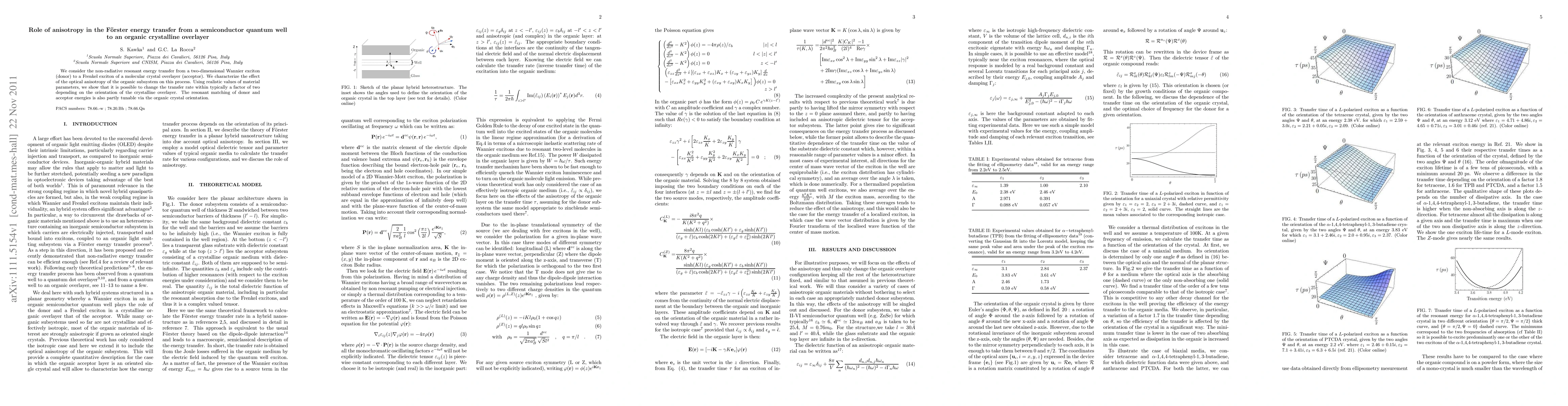 This paper investigates the impact of optical anisotropy in organic crystals on Förster energy transfer from semiconductor quantum wells to the organic overlayer. It demonstrates that the energy transfer rate can vary by a factor of two based on the crystalline overlayer's orientation, with resonant energy matching also influenced by the crystal's orientation.
