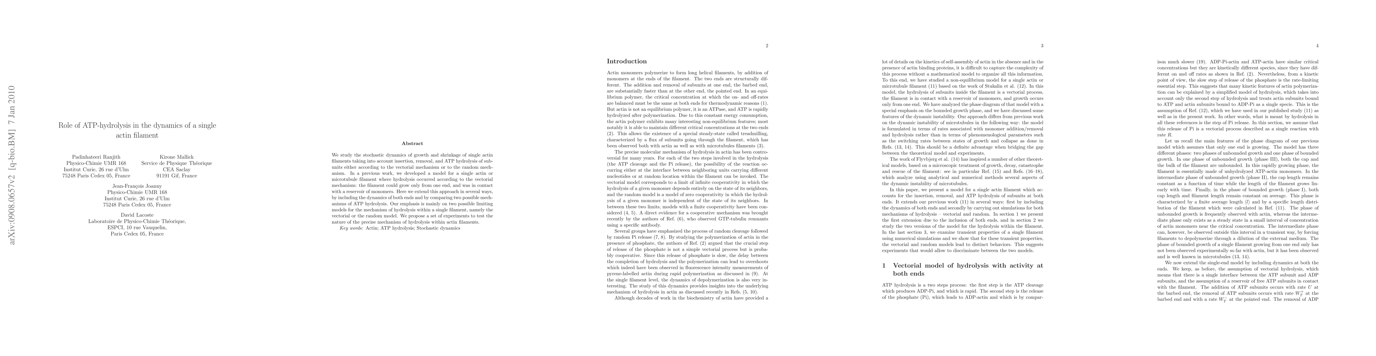 This paper investigates the stochastic dynamics of single actin filament growth and shrinkage, focusing on ATP hydrolysis mechanisms. It compares the vectorial and random models of ATP hydrolysis, proposing experiments to determine the precise mechanism within actin filaments.