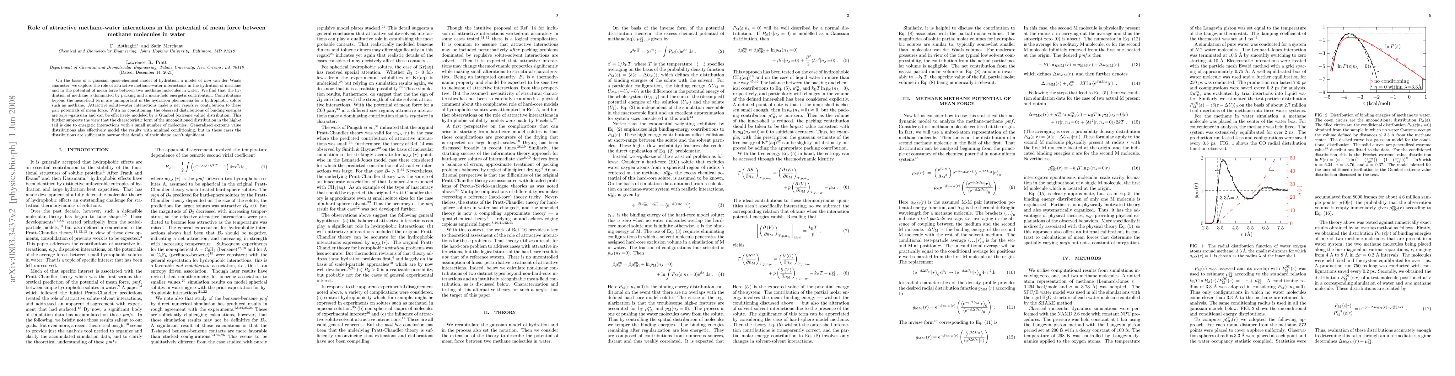 The hydration of methane in water is dominated by packing and energetic contributions, with attractive solute-water interactions causing a net repulsive force between methane molecules. The observed distributions of binding energies can be effectively modeled using extreme value distributions.