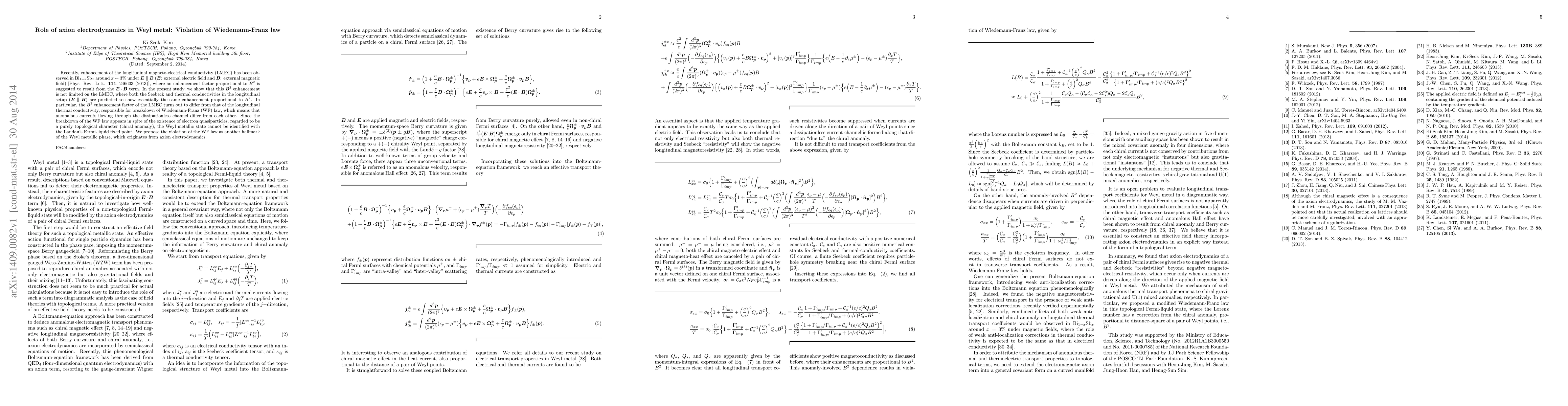 Recently, enhancement of the longitudinal magneto-electrical conductivity (LMEC) has been observed in Bi$_{1-x}$Sb$_{x}$ around $x \sim 3\%$ under $\bm{E} \parallel \bm{B}$ ($\bm{E}$: external electric field and $\bm{B}$: external magnetic field) [Phys. Rev. Lett. {\bf 111}, 246603 (2013)], where an enhancement factor proportional to $B^{2}$ is suggested to result from the $\bm{E} \cdot \bm{B}$ term. In the present study, we show that this $B^{2}$ enhancement is not limited on the LMEC, where both the Seebeck and thermal conductivities in the longitudinal setup ($\bm{E} \parallel \bm{B}$) are predicted to show essentially the same enhancement proportional to $B^{2}$. In particular, the $B^{2}$ enhancement factor of the LMEC turns out to differ from that of the longitudinal thermal conductivity, responsible for breakdown of Wiedemann-Franz (WF) law, which means that anomalous currents flowing through the dissipationless channel differ from each other. Since the breakdown of the WF law appears in spite of the existence of electron quasiparticles, regarded to be a purely topological character (chiral anomaly), the Weyl metallic state cannot be identified with the Landau's Fermi-liquid fixed point. We propose the violation of the WF law as another hallmark of the Weyl metallic phase, which originates from axion electrodynamics.