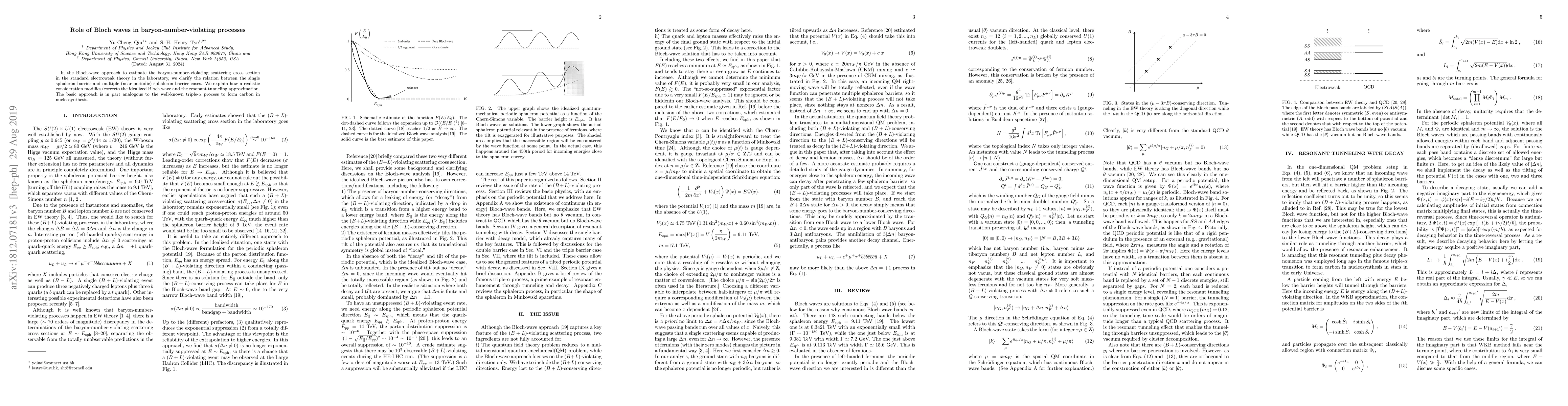 This paper investigates the role of Bloch waves in estimating baryon-number-violating scattering cross sections, clarifying the differences between single and multiple sphaleron barriers. It also discusses how realistic considerations modify idealized Bloch wave models and resonant tunneling approximations, drawing parallels to the triple-$\alpha$ process in nucleosynthesis.
